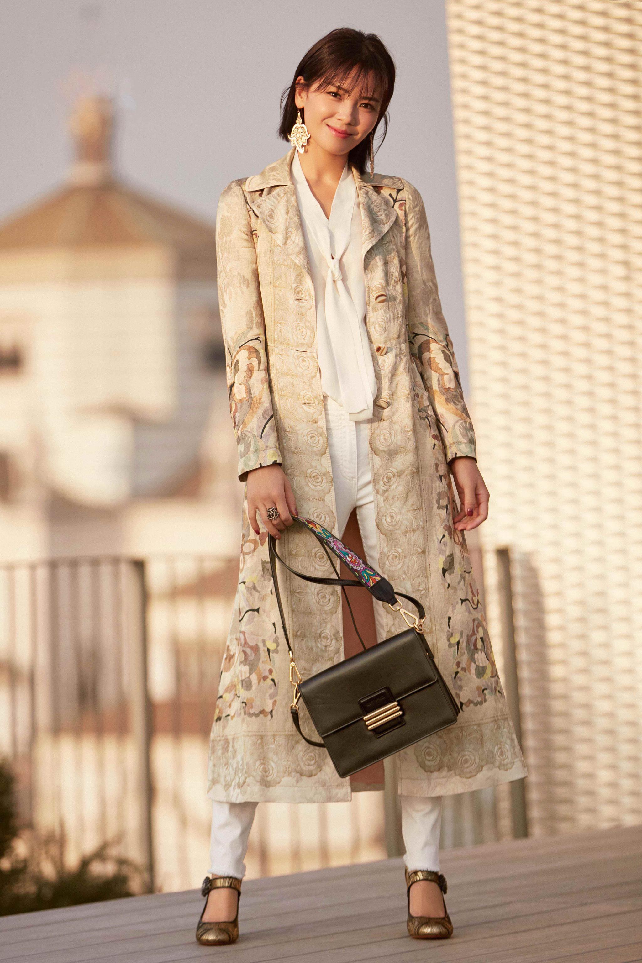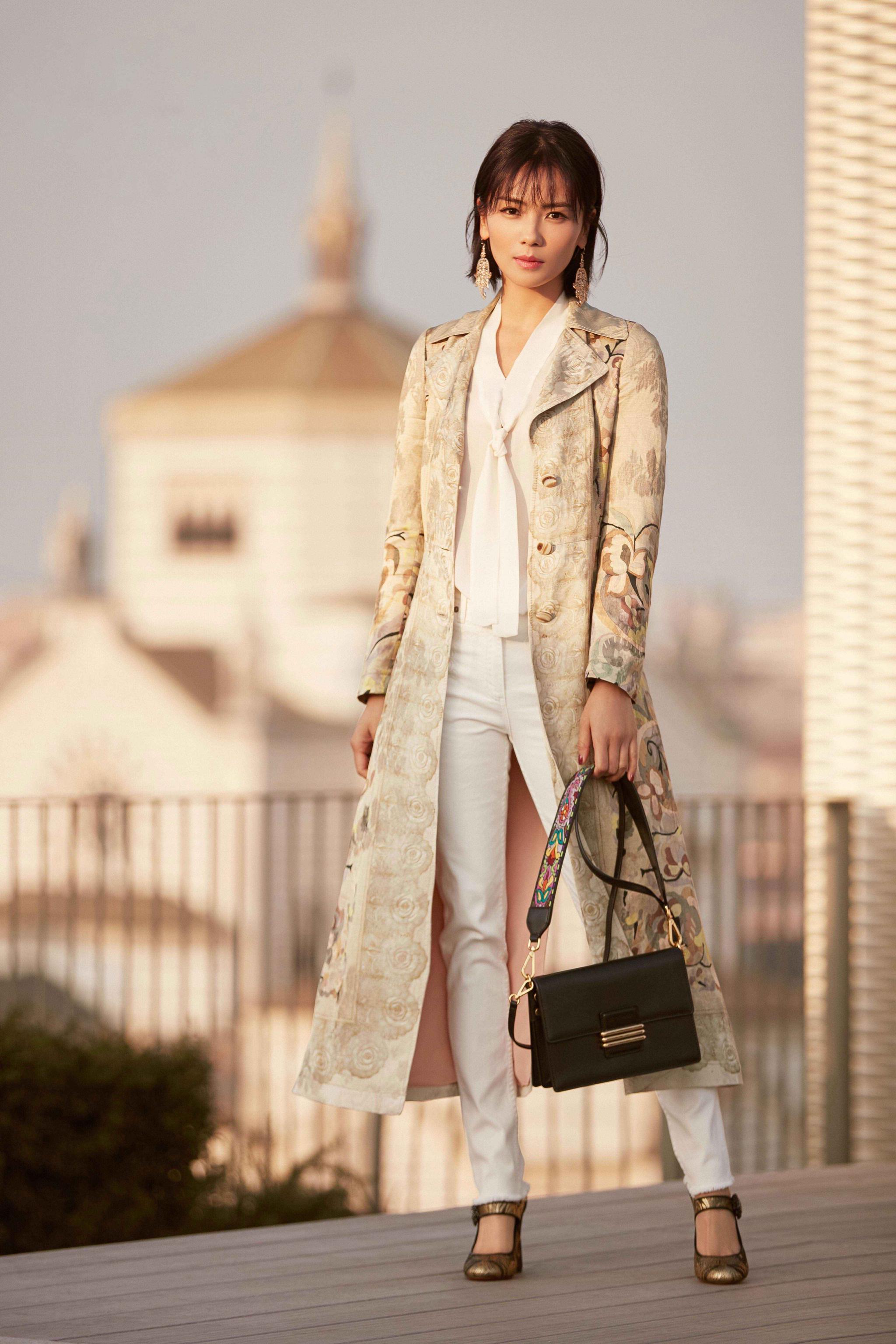 刘涛身穿一件欧洲宫廷风花纹的风衣,内搭白色雪纺衬衣,手拎宽带时尚单肩包,随性的搭配尽显职场新女性的魅力,素雅的妆面,复古的耳饰,又让举手投足间流漏出一丝甜美可爱。