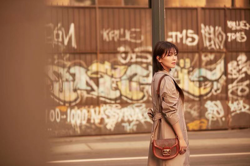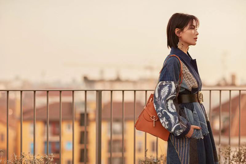 近几年潮流的复古水洗丹宁外套,刘涛也依然驾驭的清新别致,突显曲线的柔美与纤细。手提驼色通勤包,整个人气场十足又不失女性的柔美。