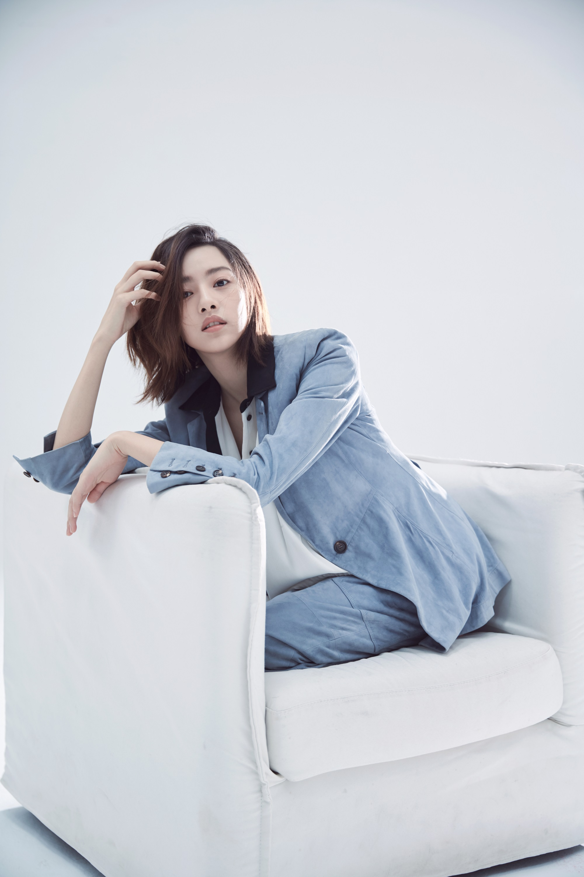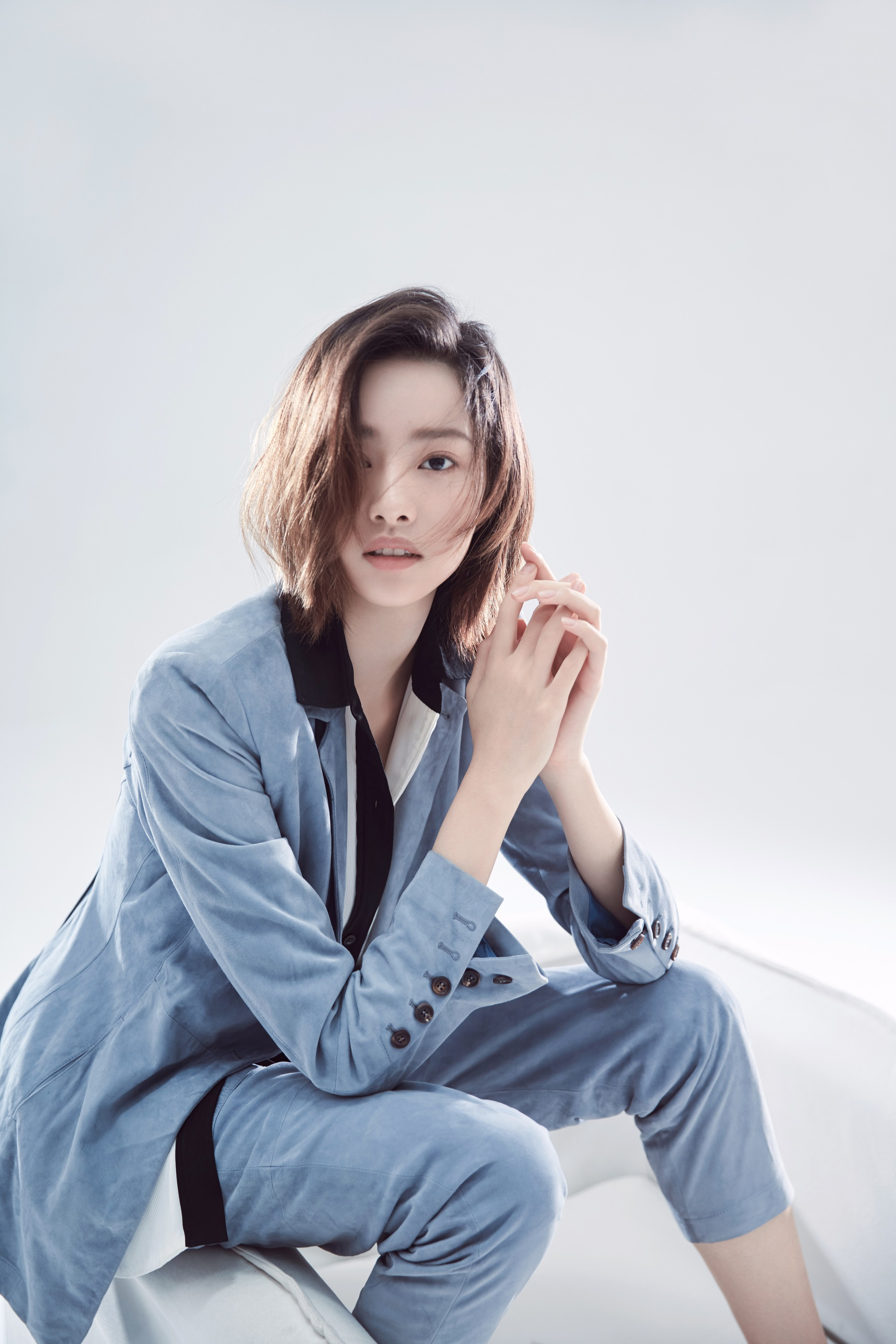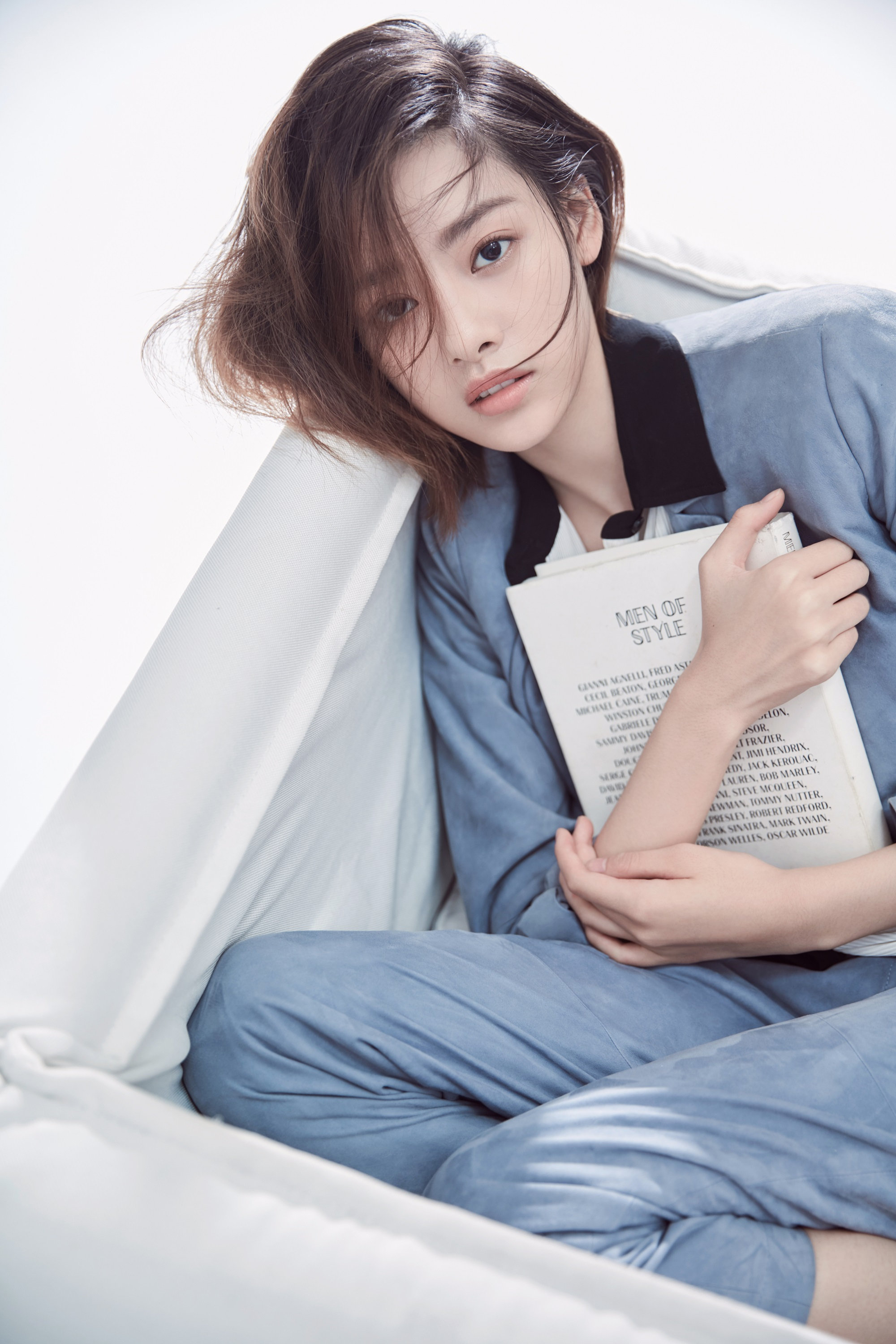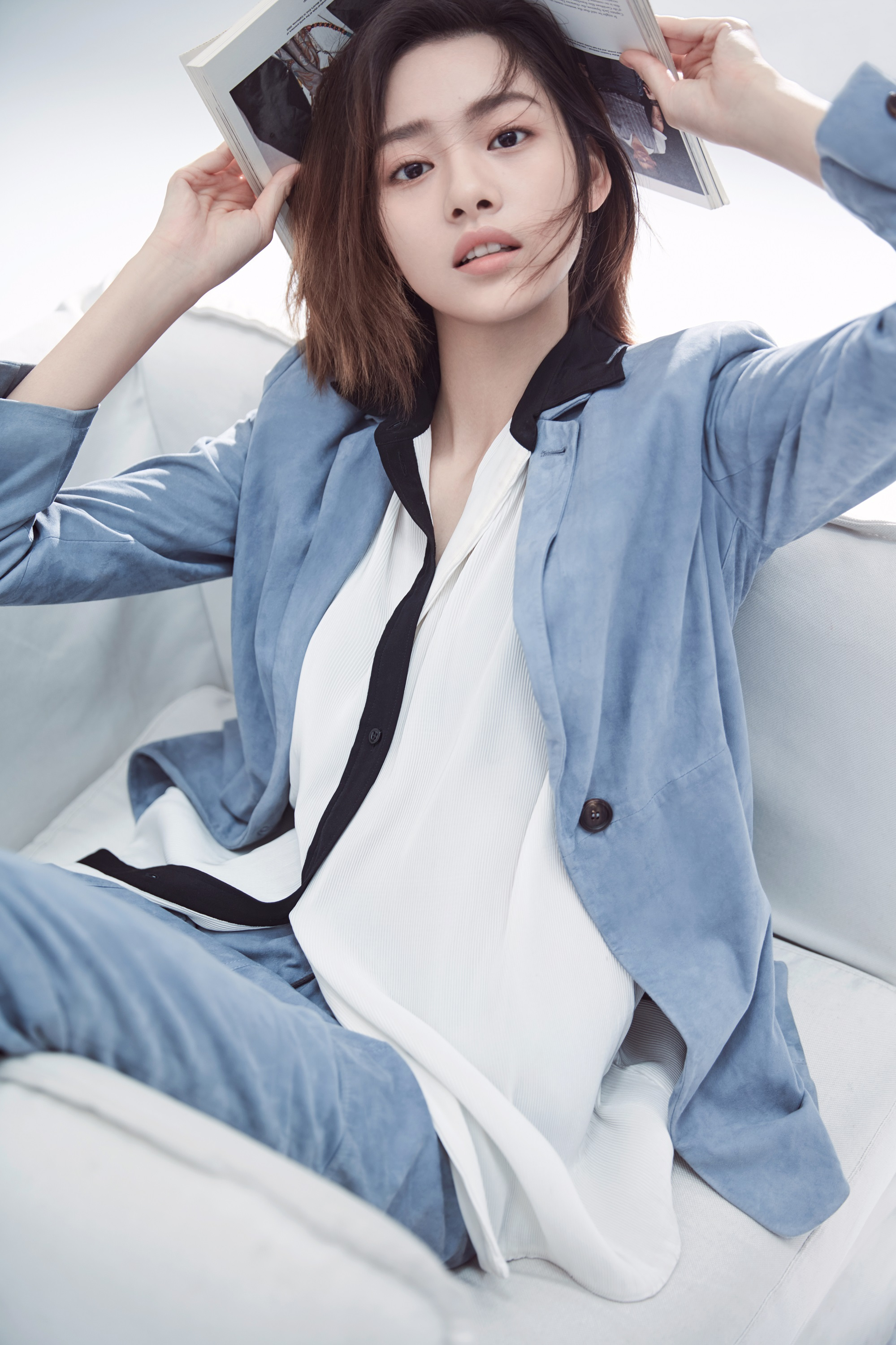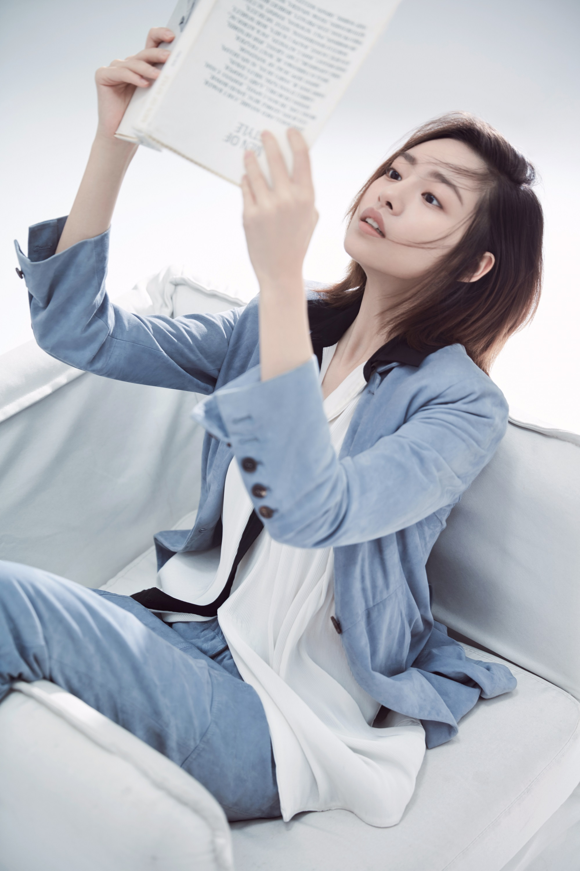 她身着OL风蓝色西服套装内搭简约的白衬衫,时尚干练而不失休闲范儿,以个性短发出镜张扬青春,眼神纯净气质出挑,手捧书卷又平添了几分清新而文艺的气息。