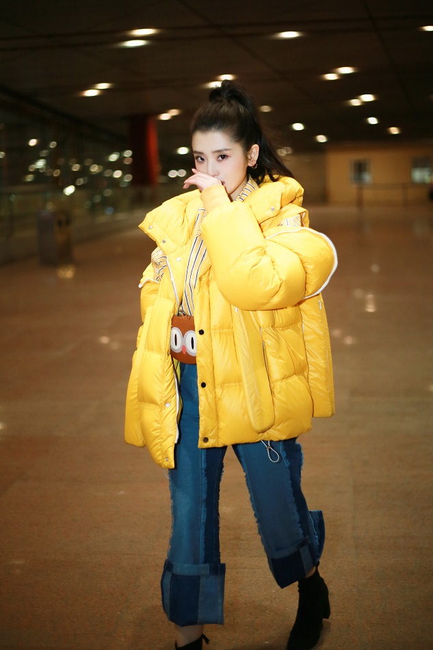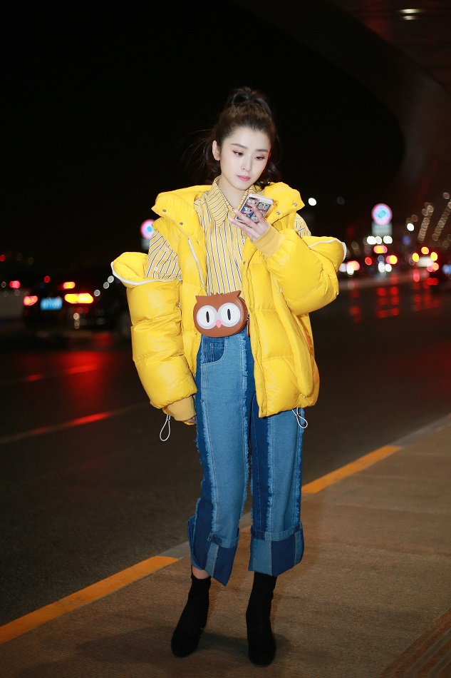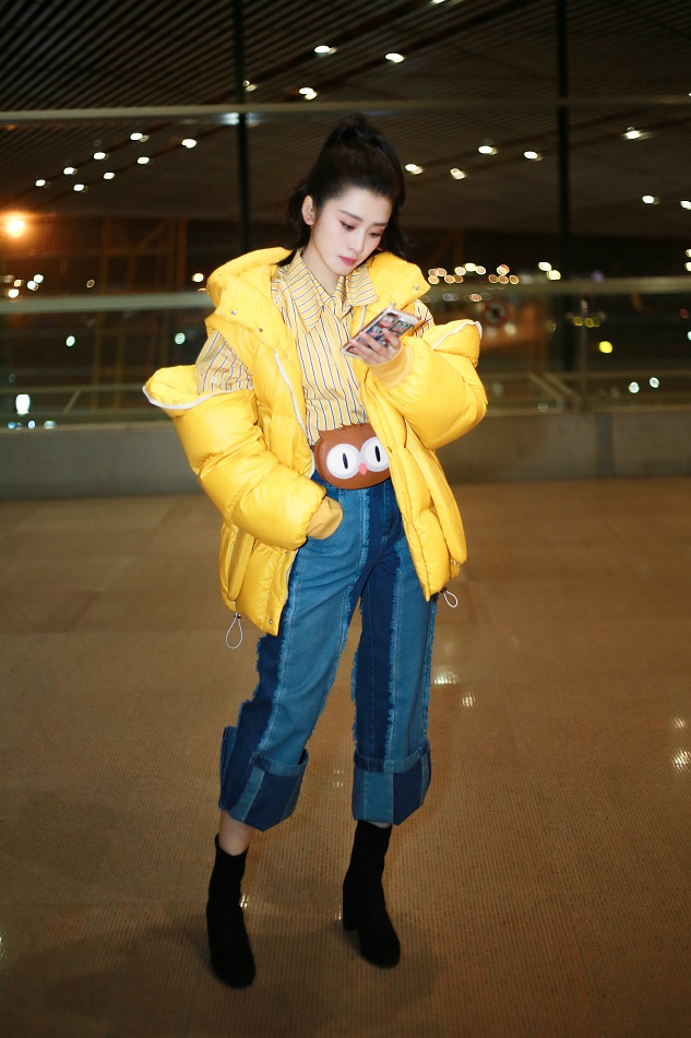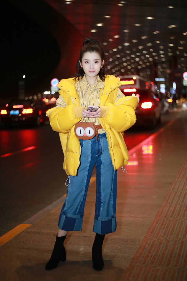 近日,演员李若嘉曝光了一组机场街拍look。镜头中,李若嘉身着黄色露肩羽绒服,内搭黄蓝色条纹衬衫,再搭配上蓝色拼接牛仔裤,率性时尚尽显简约随性。手持萌趣手机壳的李若嘉一头清爽减龄的马尾辫,再配搭上腰间的猫头鹰腰包更是显得尤为俏皮灵动,可爱气息十足。