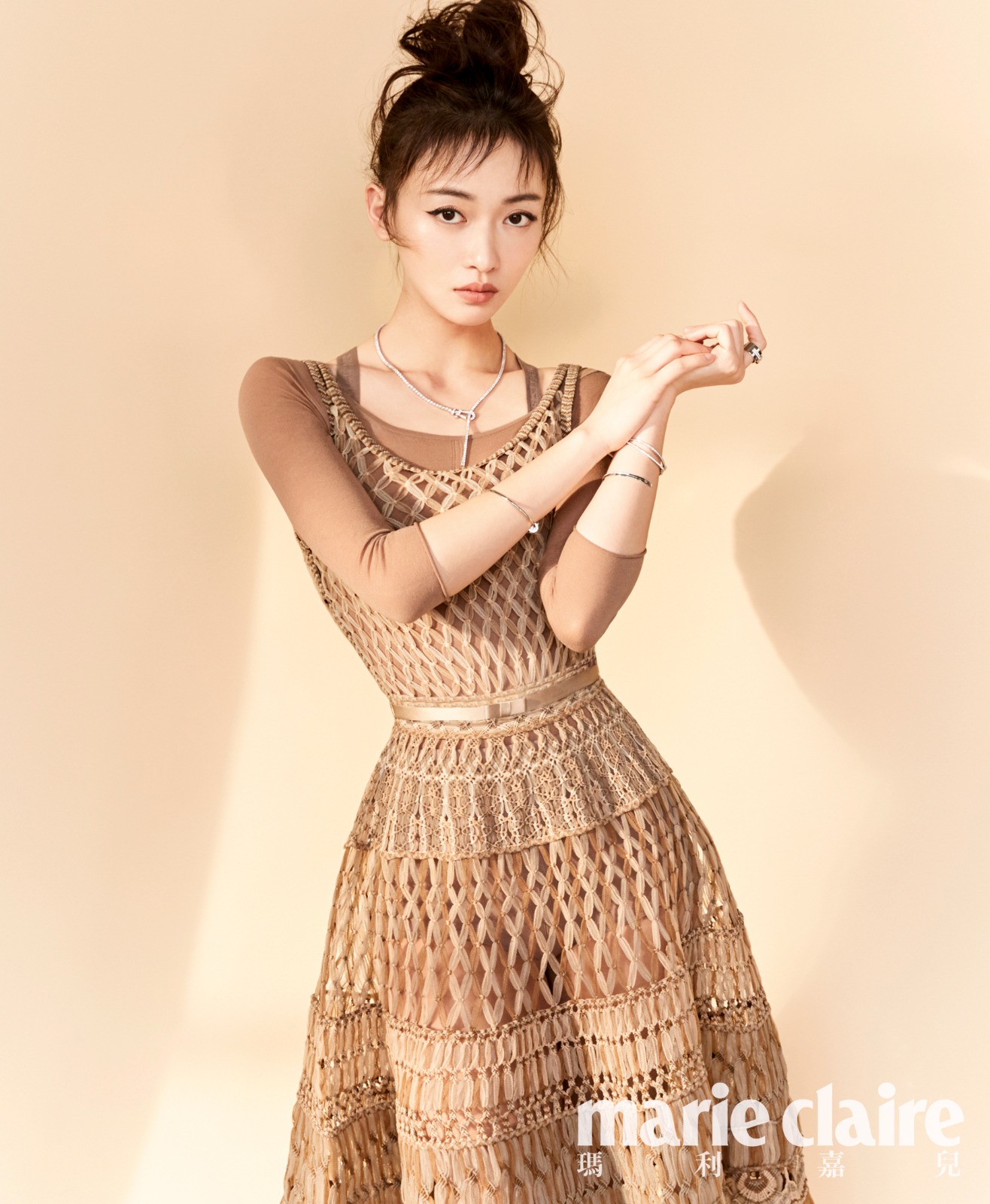 近日吴谨言为《嘉人》香港版拍摄的封面大片及内页曝光。照片中吴谨言上演复古少女风,在与酷感的碰撞中时尚张力十足。封面以黑色紧身上衣搭配刺绣花朵裙装,优雅兼具不羁态度;另外两套造型主打如梦如幻风格,网纱裙装轻盈灵动,举手投足之间自带神秘的少女气质,尽显曼妙身姿。