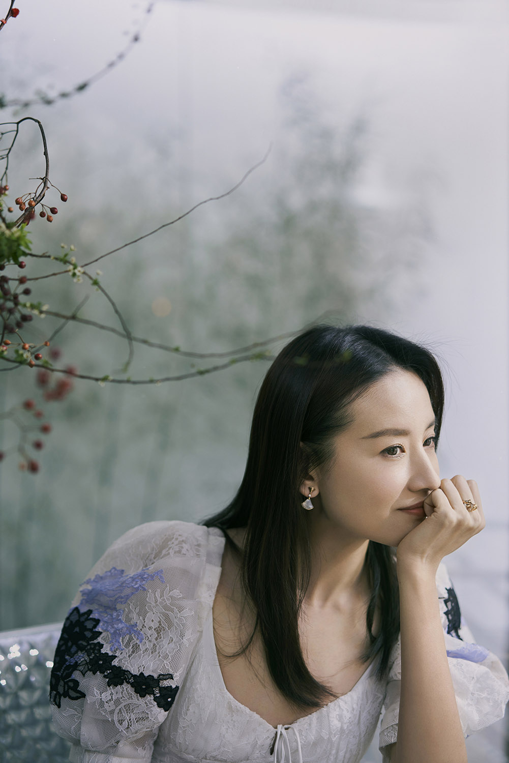 近日,董洁为《时尚先生》拍摄一组意境十足的大片。在一个古香古色的庭院内,董洁身着纯白手工刺绣蕾丝长裙,在春日和煦的阳光下,托腮享受着浮生半日闲,尽显从容与优雅。大片有意强调建筑构图,而董洁一席白色衬衫搭纯黑连衣裙,穿梭在松树与木质建筑间,成为画面构图中的点睛之笔。无需有大幅度的肢体动作,那一双恬淡而充满故事的眼睛便能牢牢吸引观众视线。