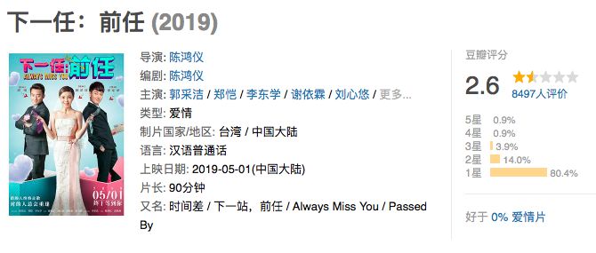 眼看前任的话题程度如此火爆,这部原本名叫《时间差》的电影,也上赶着蹭了一波热度,被不少观众认为是前任4的作品。