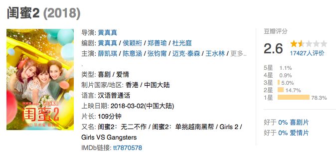 去年的《闺蜜2》看过吗?大概就是半斤八两了。