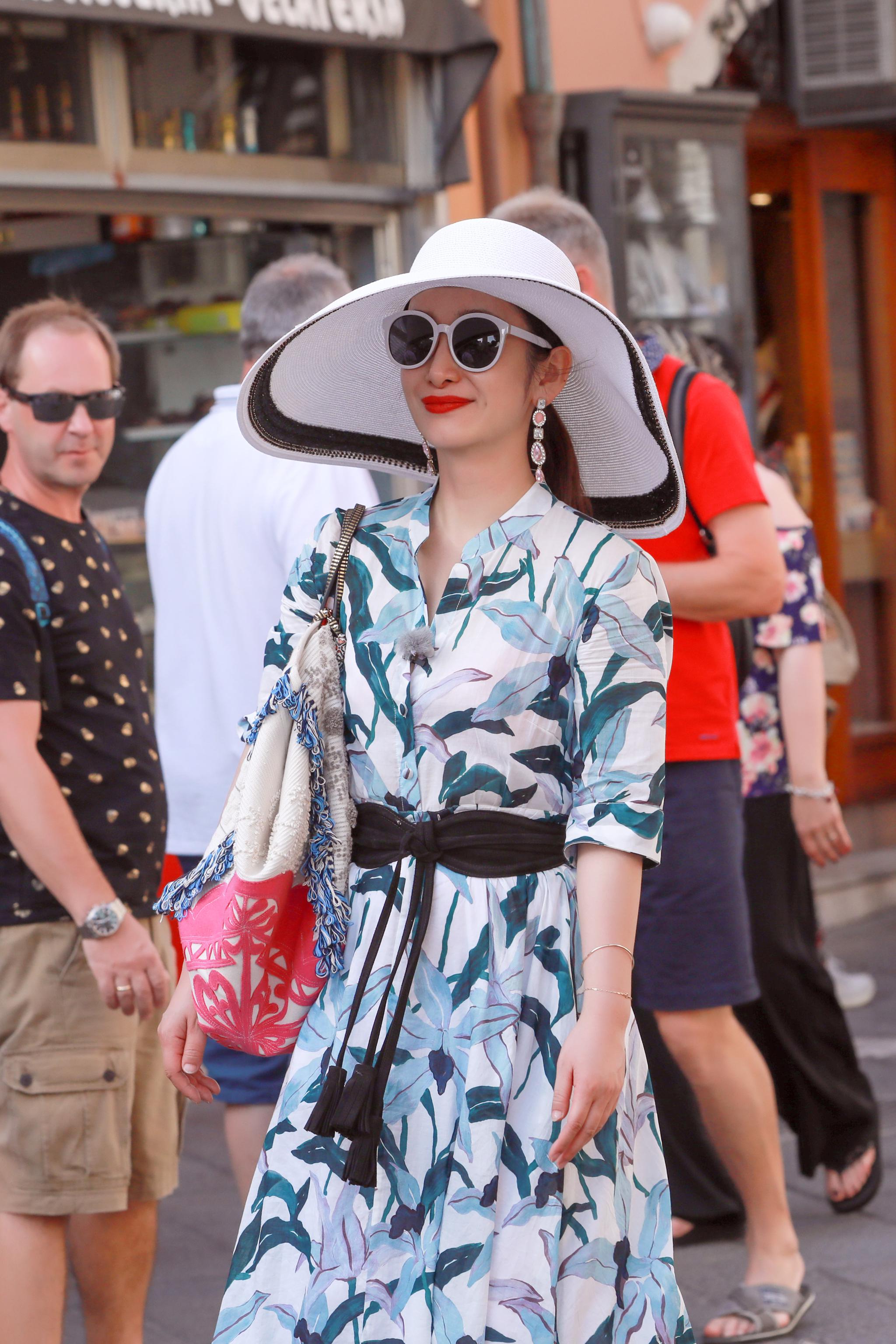 2019年8月13日讯,近日,秦海璐现身陶尔米纳,碧海蓝天下拍绝美街拍,感受着西西里独特的浪漫气息和热情迷人的文化情怀。她戴着赫本风大檐帽+复古墨镜,化精致红唇,一袭落地长裙,气场立显~480°无死角美貌也真绝了!