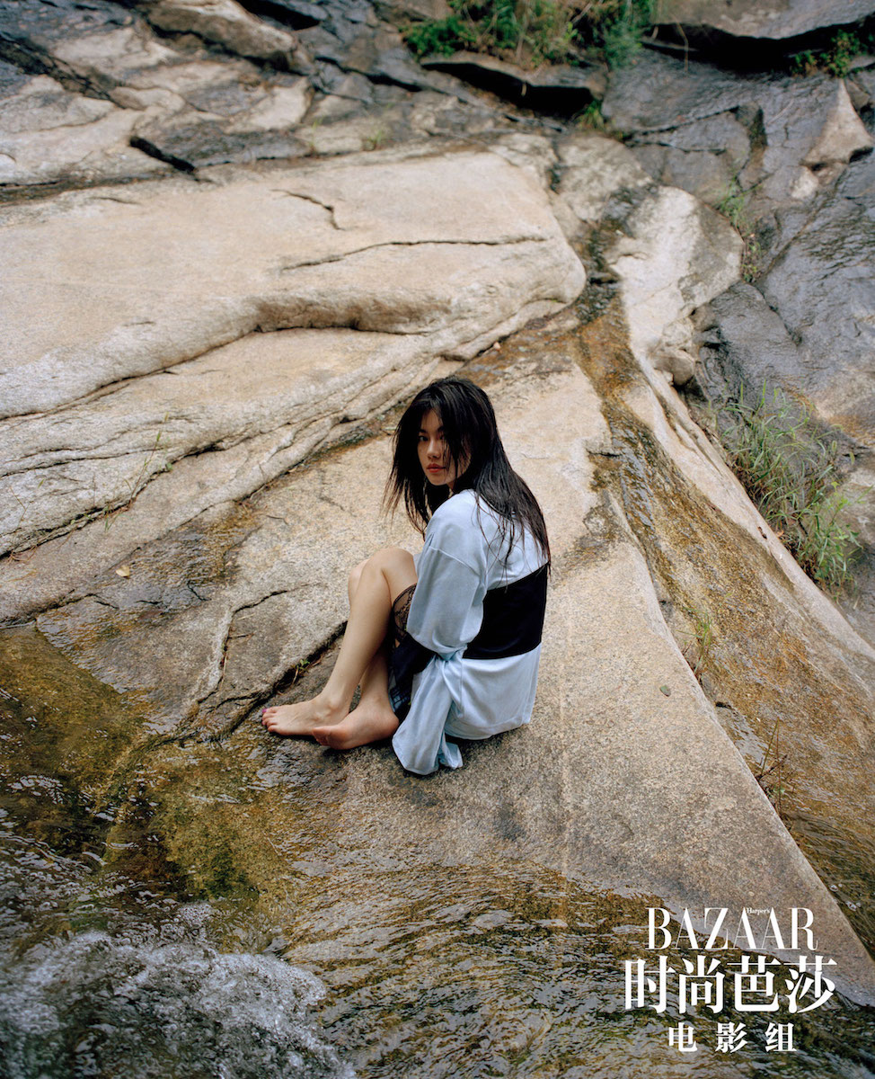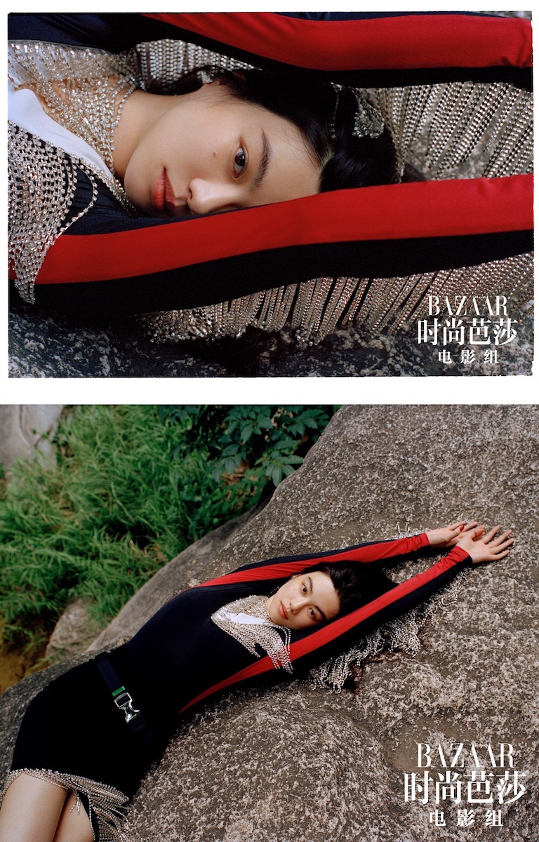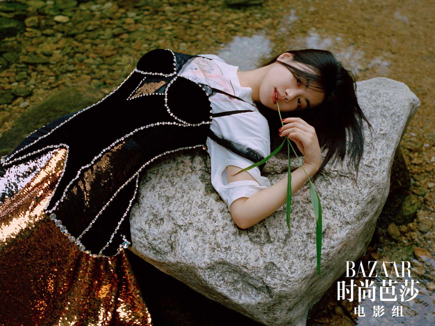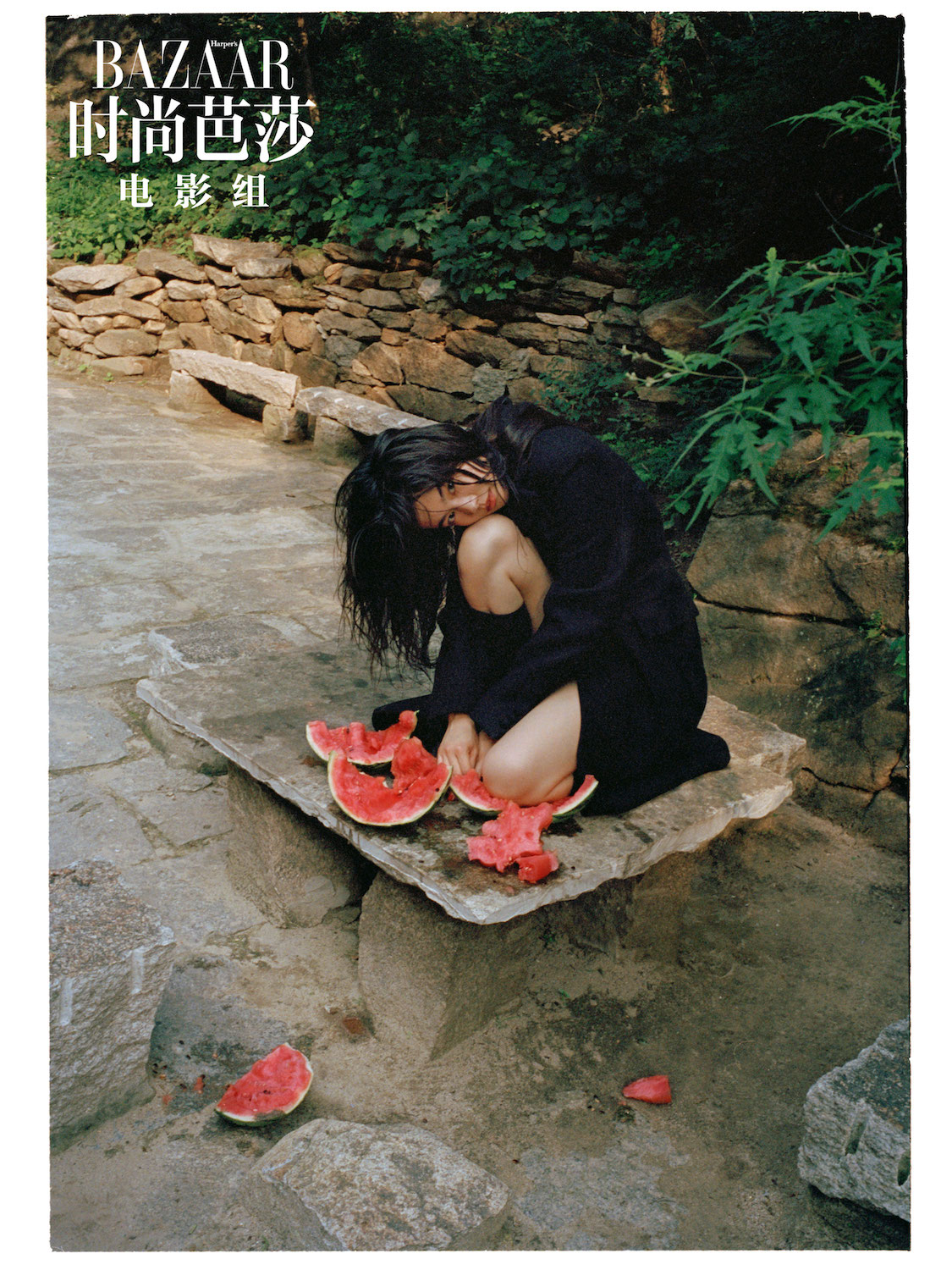 今日,新人演员李蔓瑄为《时尚芭莎》拍摄的一组大片曝光,游走在山水间,展现一直以来的酷女孩特质。李蔓瑄身着亮片连衣裙侧躺在石头上,眼神犀利,画面充满故事。或身着黑色大衣,手捧西瓜,好似一颗真心,充满了趣味。