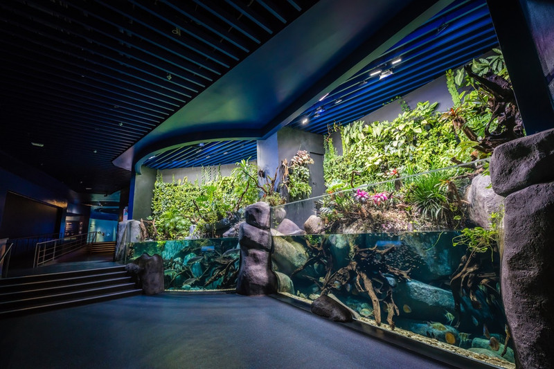 观景池宽36米、高8.3米、厚70公分的全东南亚最大的水族观景窗,让人迟迟不想离开,沉醉在这一片蔚蓝之中。
