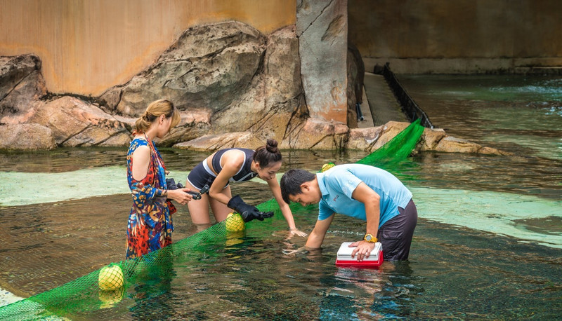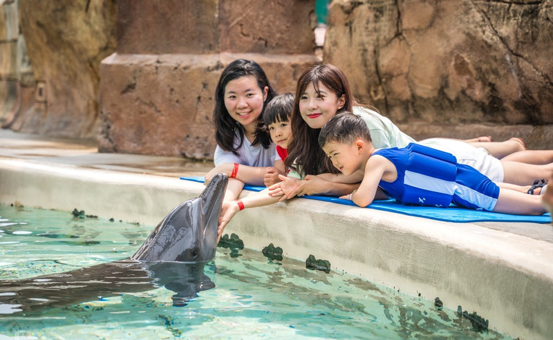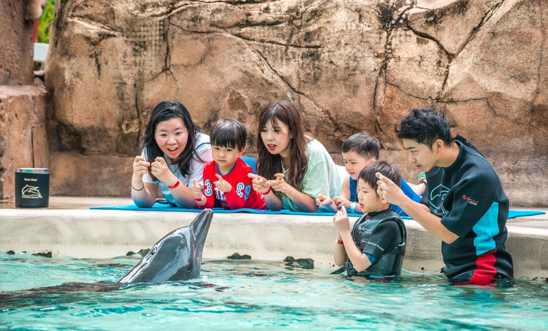 在水上探险乐园,并不会像国内的很多水族馆那样,把海豚训练成为演员来进行各种表演挣钱,要知道20多支海豚可以组建一个很大的表演规模了,年吸金能力也在数千万新币左右。