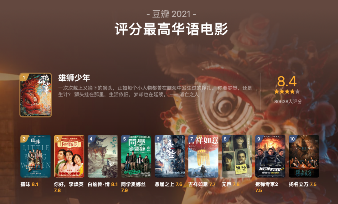 前几天,我们也分享了豆瓣的2021年度电影榜单,