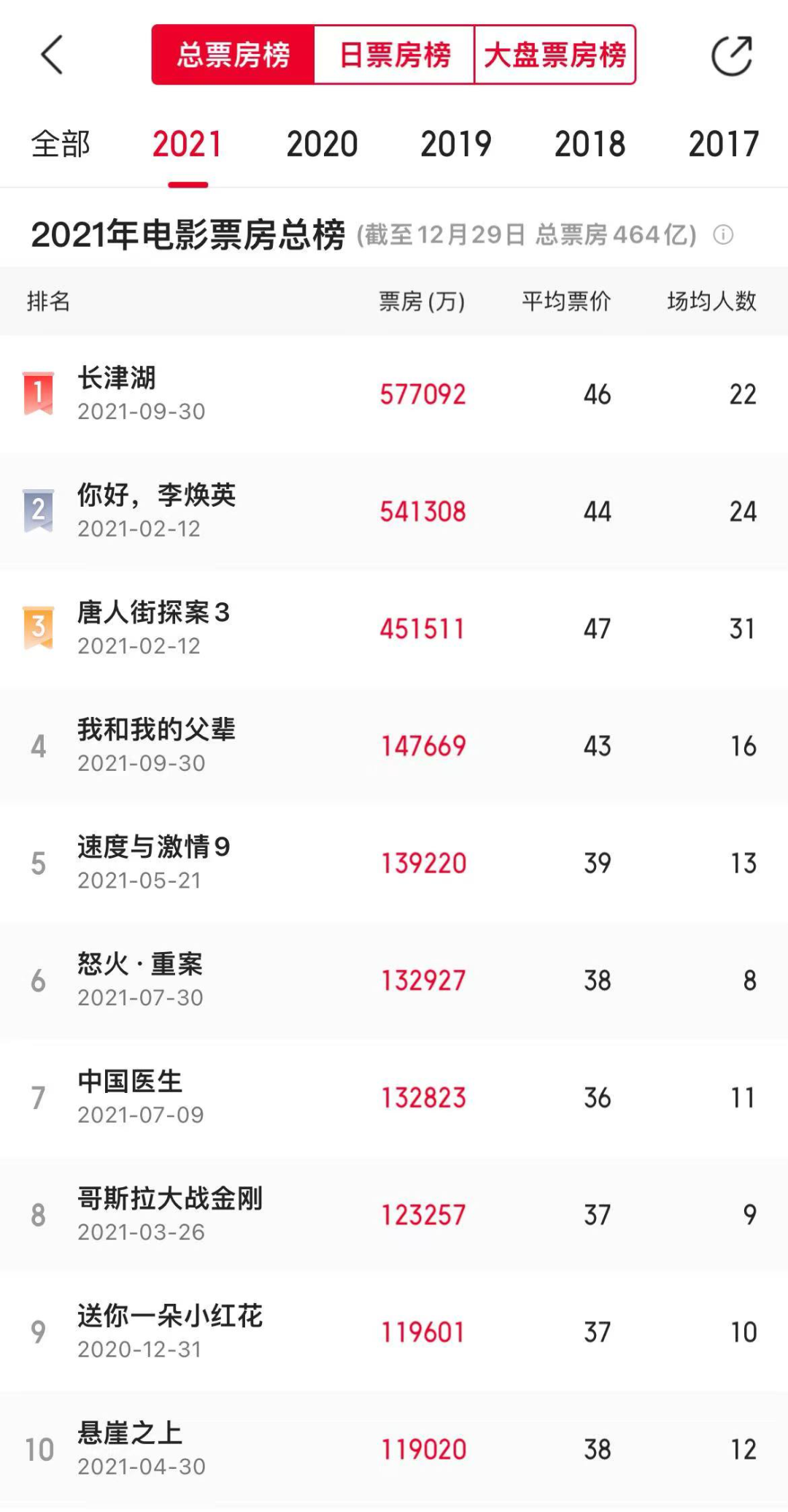或者,我们还可以加一个同样非常代表大众口味的榜单,就是2021年年度票房榜。