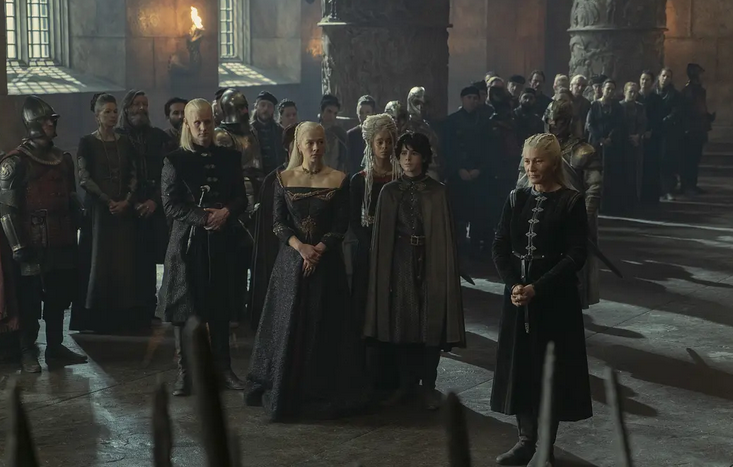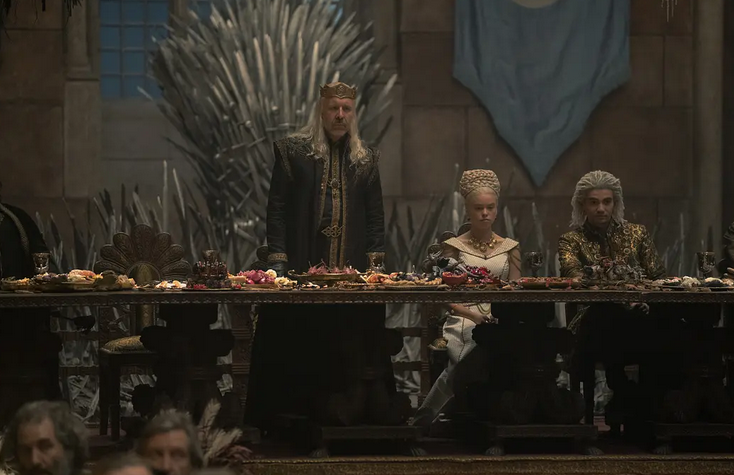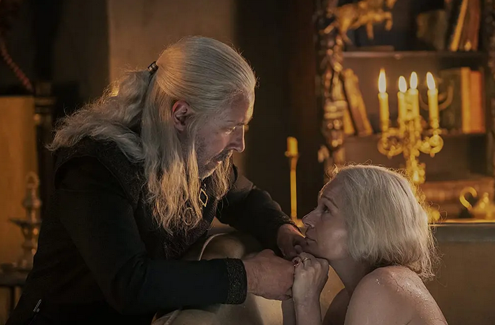 到了本剧一开始,韦赛里斯一世选择继承人的时候,难题出现,韦赛里斯一世无子,只有弟弟戴蒙和女儿雷妮拉可以继承王位。
