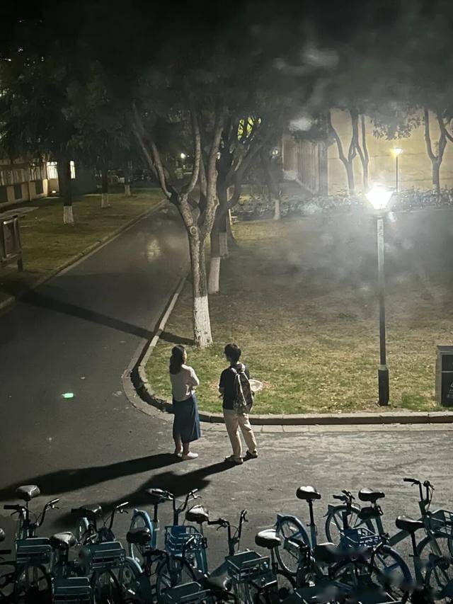 那天和几个好朋友一起出去唱歌,除了他其他人都知道我暗恋他。结束以后我们走回宿舍,朋友借口离开,其实偷偷跟在我们后面偷 拍了我俩一起聊天。也许注定不能「跟你散步桥上把臂看着风景」,至少可以「与你说些无聊事,再走几千里」。