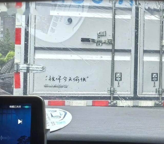 下雨天,生病去上班,本来有点emo,坐在网约车后座突然看到前面的货车后面贴了「祝你今天愉快」,感觉祝福生效了,马上就被治愈了。