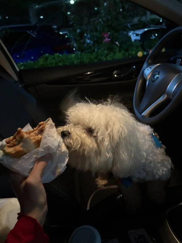 已经工作3年的人,在妈妈面前还是没有外卖自由,哈哈哈。某天晚上,想吃麦当劳了,于是在家随便吃了几口,以遛狗的名义带着小狗出来啦,把麦当劳点到了小区门口。然后领着小狗,拿着麦当劳去车上了,晚风从身边吹过,小狗陪着我吃上麦麦的那一刻,真是幸福极了!甚至可以原谅第二天是周一!