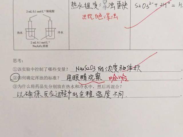 化学实验报告,这个的确是很诚实地把自己的答案写上去了,没想到老师还留了言,我和同桌笑了半天。
