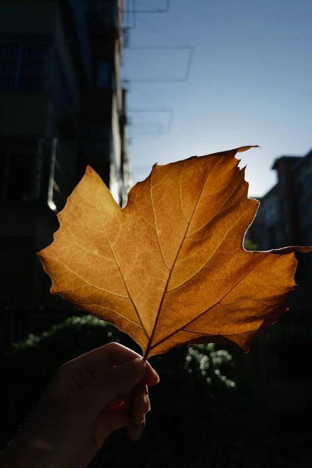 9月底的清晨,等车,听到有一片干枯到蜷缩的秋叶重重砸在地上,掷地有声,接着又有一片完整的落叶飘落在我脚边,拾起后在透明澄澈的空气里对着晨曦拍照,想说:真是一叶知秋。可没按几张已经热得出汗,这才醒悟32℃的清晨,那是「一叶骗秋」。