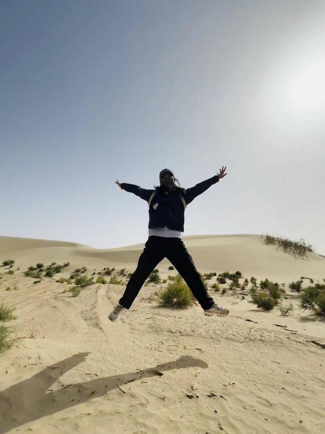9月开学了,今年是作为新传考生第二年考研,接受调剂来到了新疆的高校。从高中起我就是一个特别喜欢地理的小女孩,但是因为是文科生,所以大学并没有选择相关的专业。前几天去了我国最大的沙漠塔克拉玛干沙漠,感觉很神奇,新疆这些我曾背的滚瓜烂熟的种种山川地形,这一刻就在我眼前,远比之前自己想象的还要辽阔。这张照片跳起来的一瞬间并没有什么感觉,但是仔细想想过去与未来的可能会发生的种种,还是蛮幸运有机会在这片土地生活一段时间。