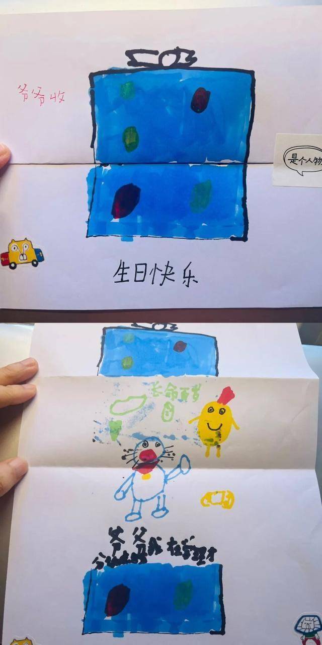 小孩儿和他爷爷感情很深。爷爷过生日时,小孩儿给爷爷在枕头下放了贺卡,上书:爷爷,我在学理财,分你点钱。好实在啊,哈哈哈哈哈,爱就要给钱花!