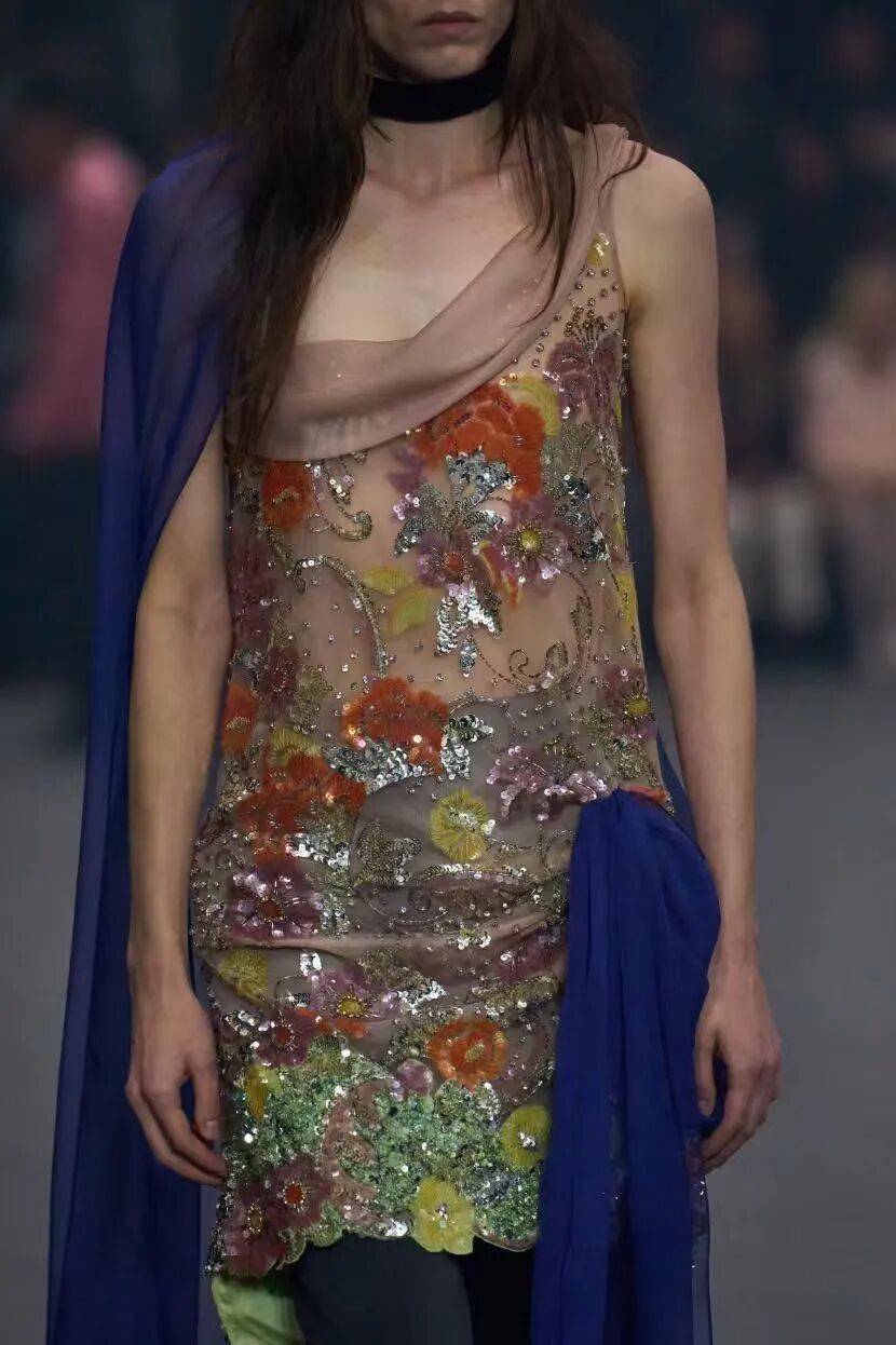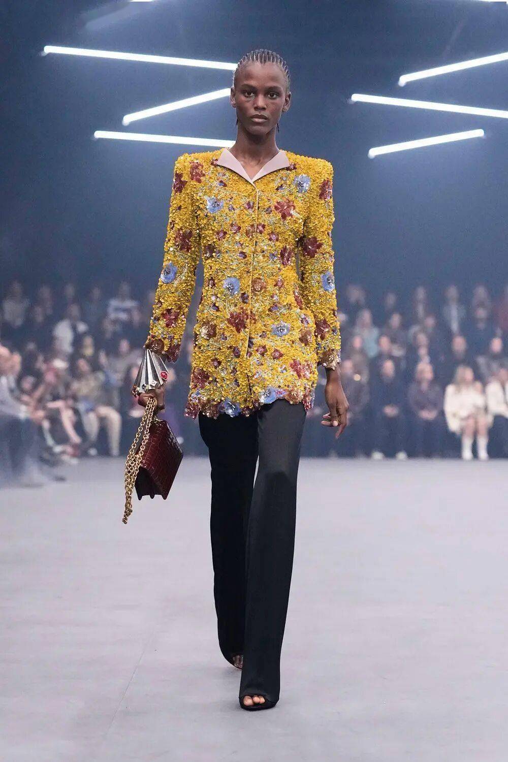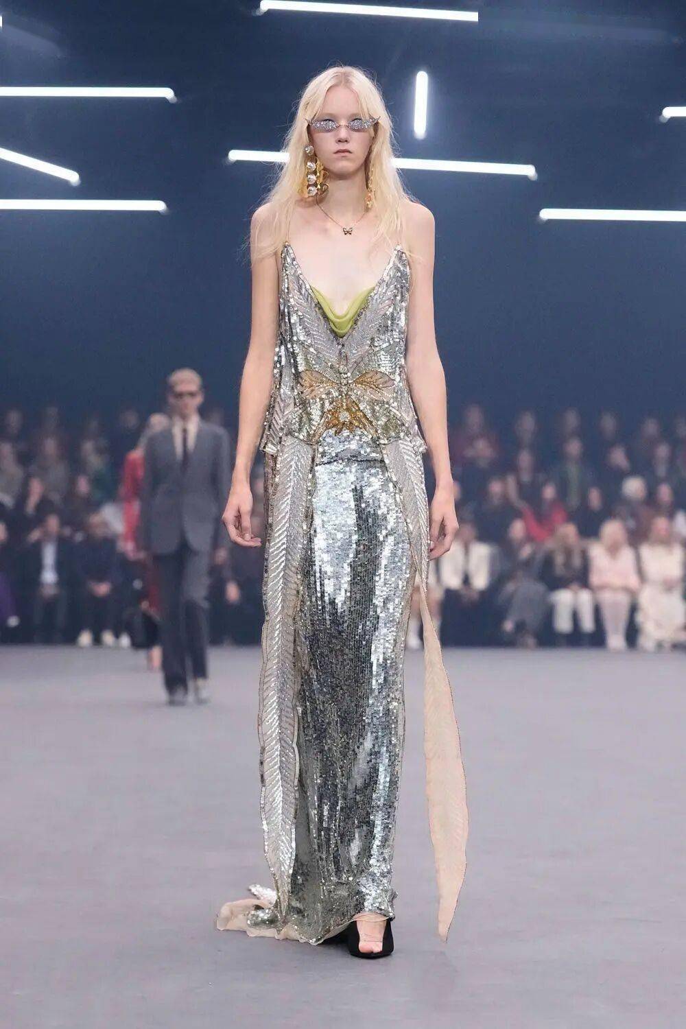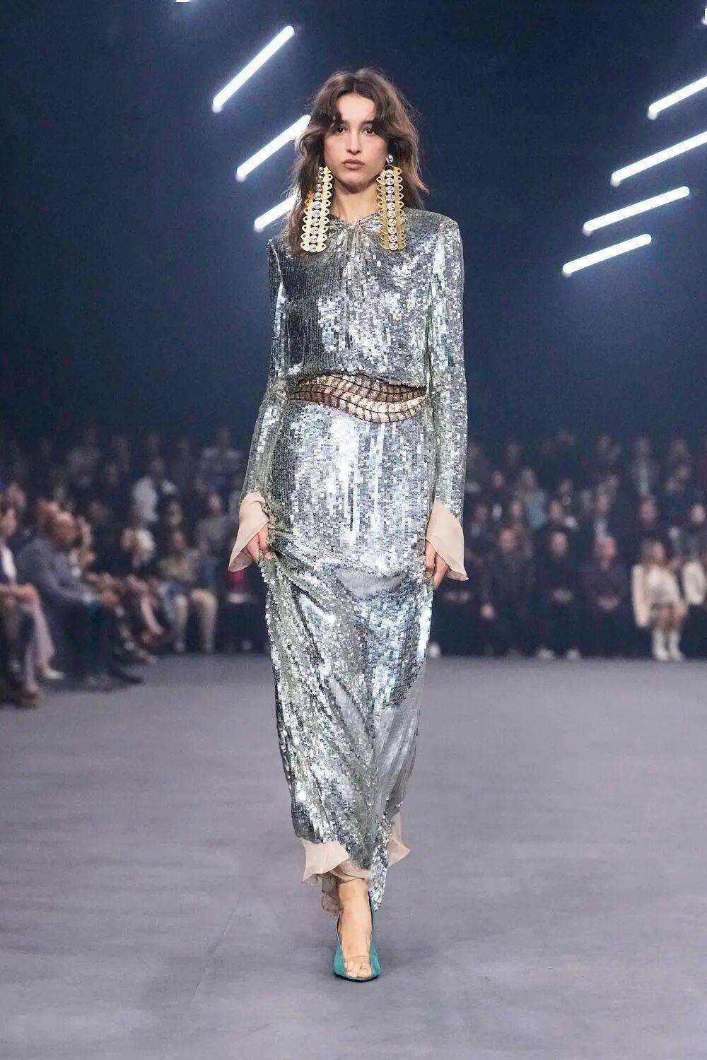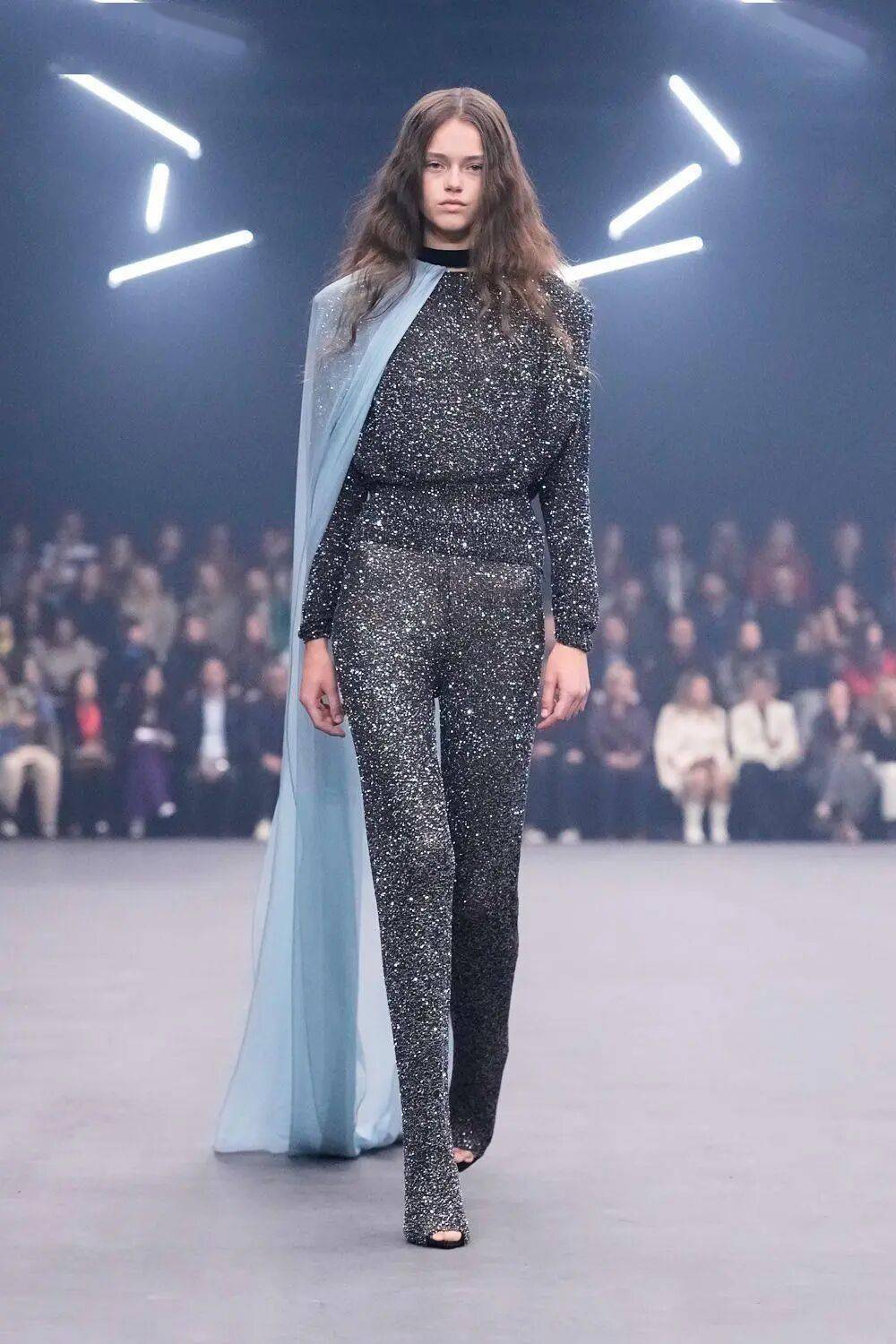 当模特身着通体覆盖着银色亮片的长裙,或是缀满水晶的连体裤走来时,那是一种毫不掩饰、如同银河倾泻的璀璨。