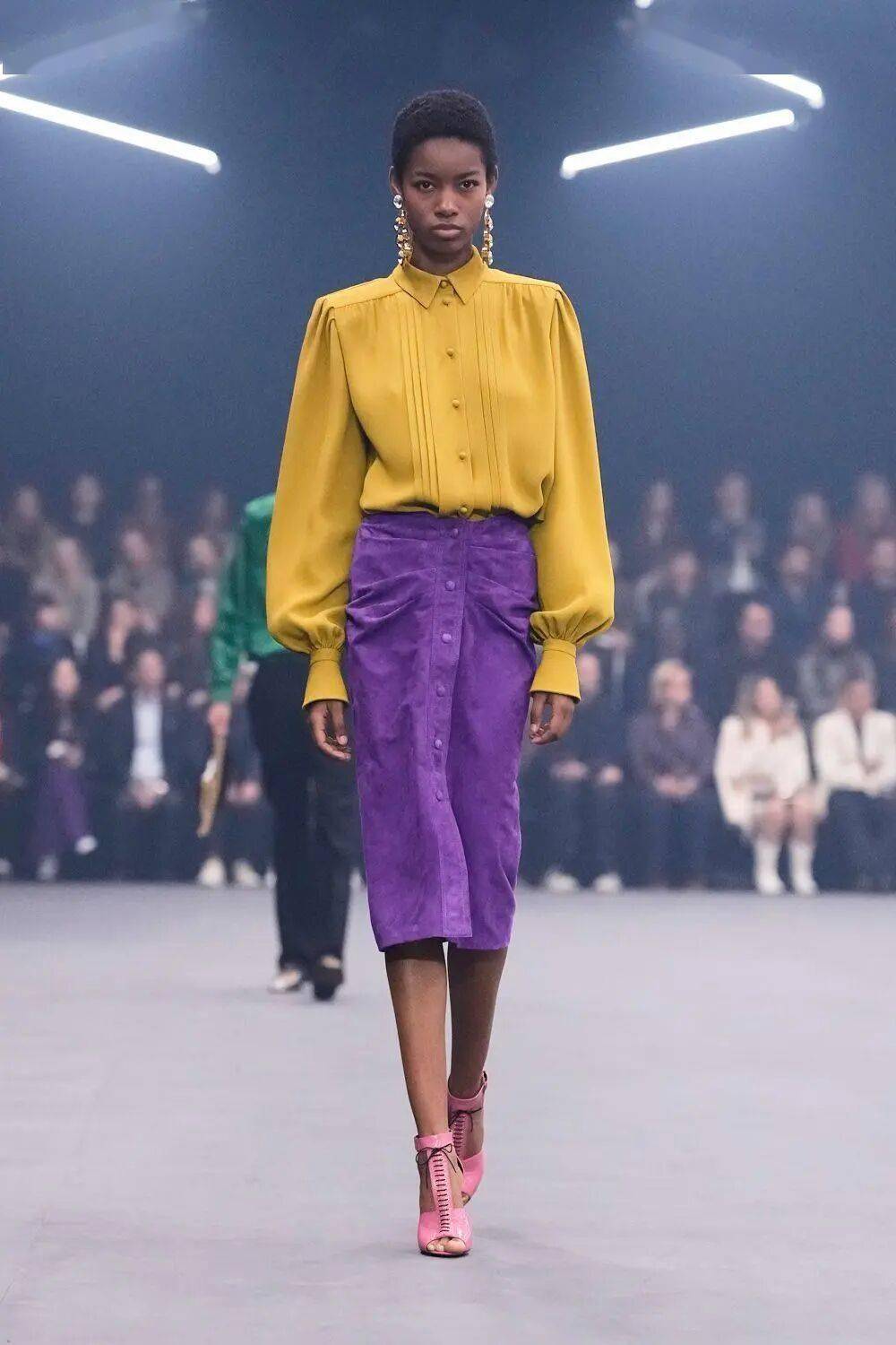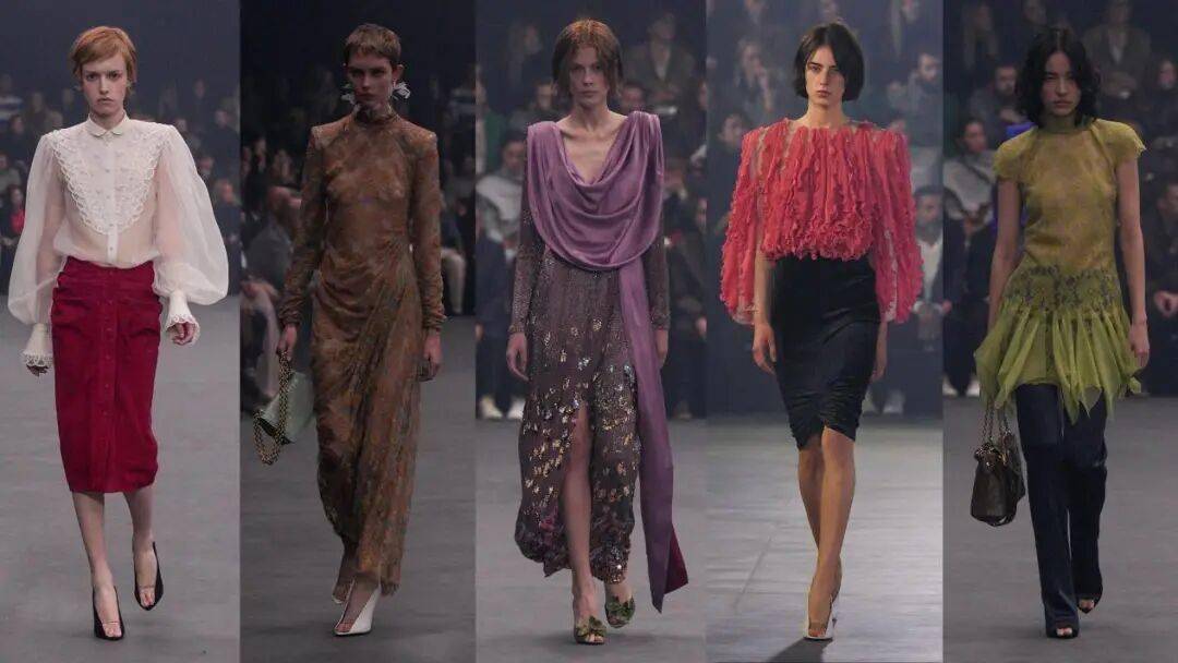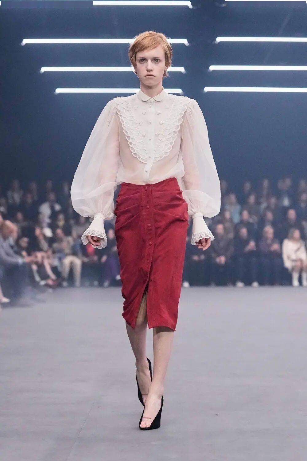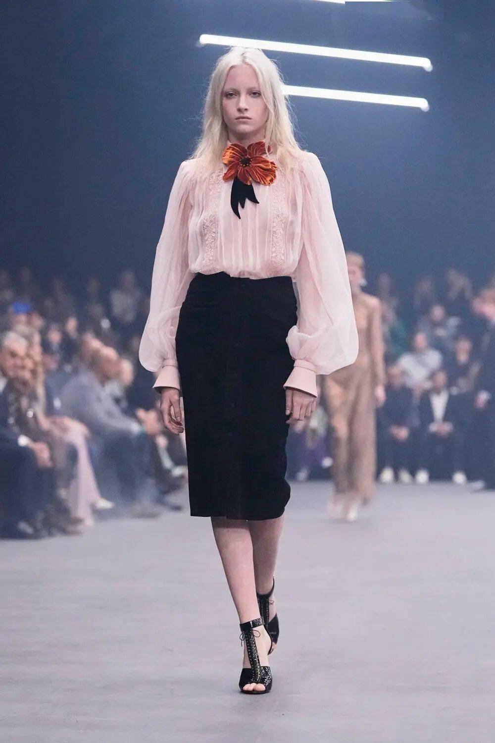Alessandro Michele 在本季抓住了这一精髓。那些带有泡泡袖、装饰着精致褶边的雪纺或丝绸衬衫,其体积感与飘逸感,与紧紧包裹身体的铅笔裙或天鹅绒裙,形成了强烈的视觉张力。
