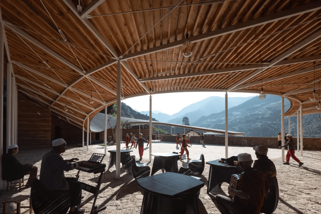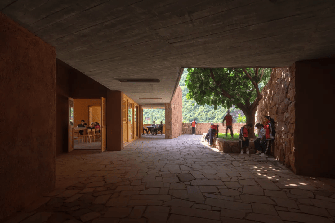 “永安之心”与“永安学堂”是同济大学团队在大理云龙永安村长期实践的两个空间节点,前者回应村庄治理,后者连接教育与社区。学堂坐落于学校与村庄之间的“边界带”,通过榕树中心与三级台地结构嵌入地形,形成多功能共享场所。设计以在地材料与低技工艺结合现代建构策略,强调空间与制度共建,推动协商式共治。白天为教学服务,夜间开放给村民使用,实现空间的复合利用与公共性生成,为制度尚未覆盖的乡村提供了一种可持续的社会结构原型。