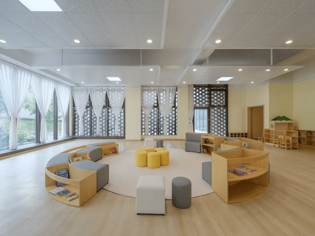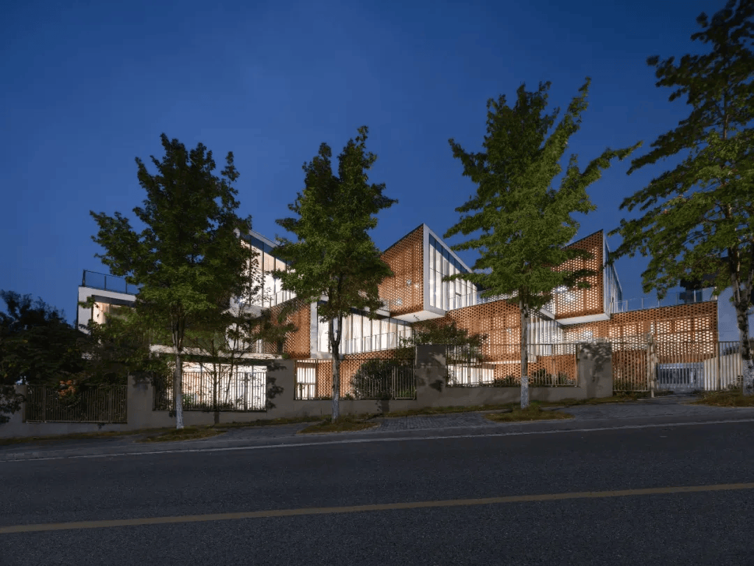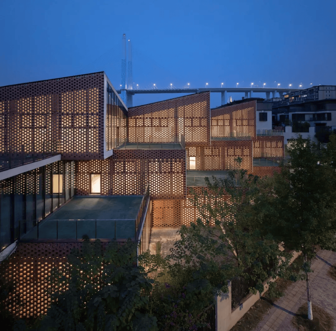 该项目位于重庆礼嘉,依嘉陵江而建,场地狭长且限制多。设计以“错叠堆栈”体量生成,打造层层退台,每层皆设露台,既拓展空间,又塑造儿童成长所需的过渡体验。南北向采用落地玻璃引入日照与江景,东西向则以陶土砖幕墙形成半透明界面,白天遮蔽视线、夜晚如灯笼般温润。建筑北侧临江设观景廊道,南侧体量错落,融入社区。整体呈现一座回应环境、融合童趣的“心理成长建筑”。