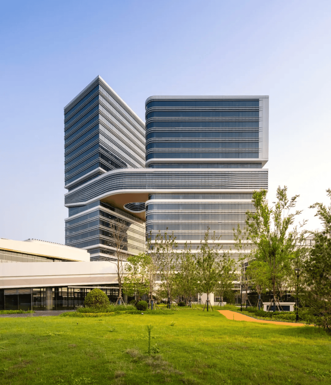 项目位于杭州钱江新城核心区,由伍兹贝格担纲全专业一体化设计,打造集总部办公、商业配套与城市公共空间于一体的综合商务中心。建筑以“魔方”形态构建,错位堆叠的体量强化城市标识性,同时创造多层次的共享空间与下沉广场。室内延续建筑语言,以温润材质营造“第三空间”式办公体验。项目已获LEED金级预认证,融合绿色生态、城市连结与未来办公理念,回应杭州新时代总部经济发展的空间需求。