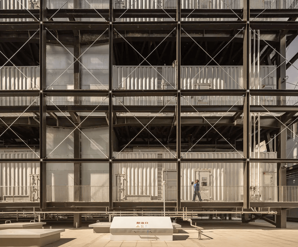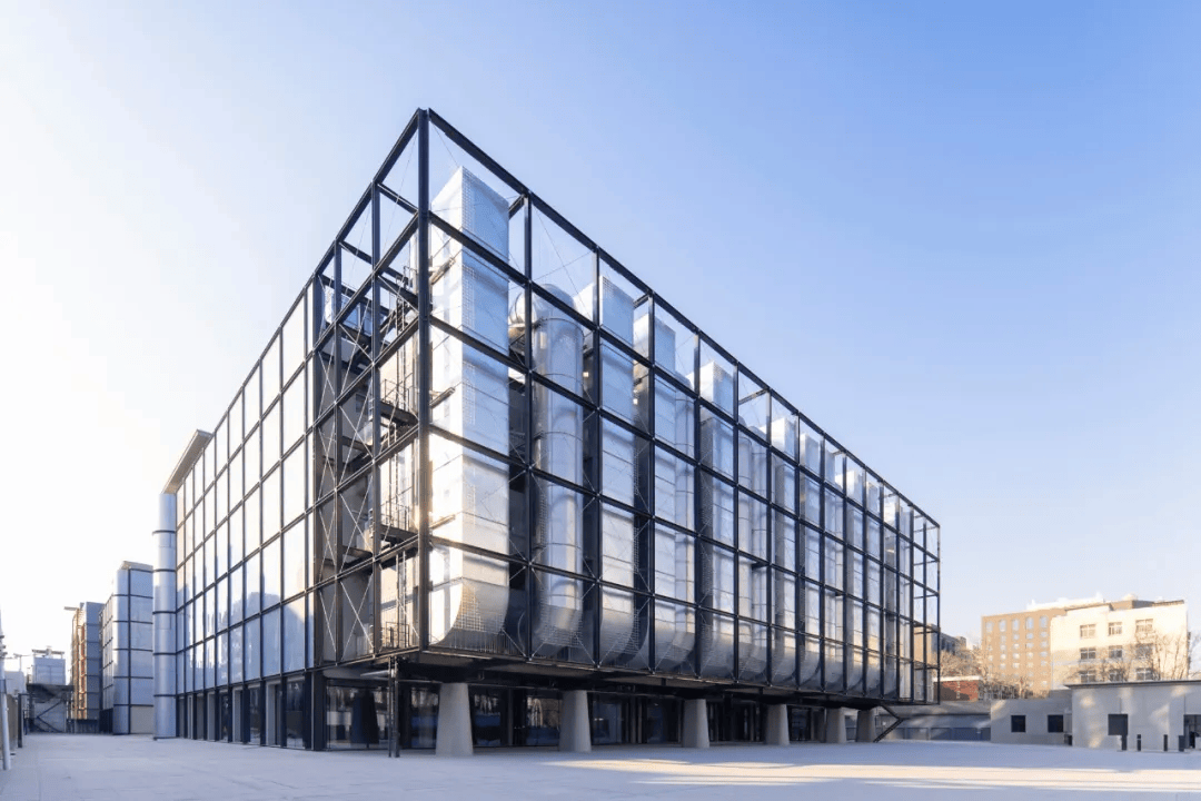 星火·761 是北京唯一位于城市核心区的人工智能算力园区,由 llLab. 设计,尝试打破传统数据中心的封闭形象。项目以“算力”为建筑驱动内核,构建人机共生空间——“黑盒子”承载展厅办公,“玻璃盒子”引入交互与透明性。建筑外立面日夜呈现双重状态,白天体现设备运转逻辑,夜晚则转为虚拟图像语言表达智能生命体“苏醒”。园区融合办公、展览、科普与公共生活,打造面向未来的“算力公园”。