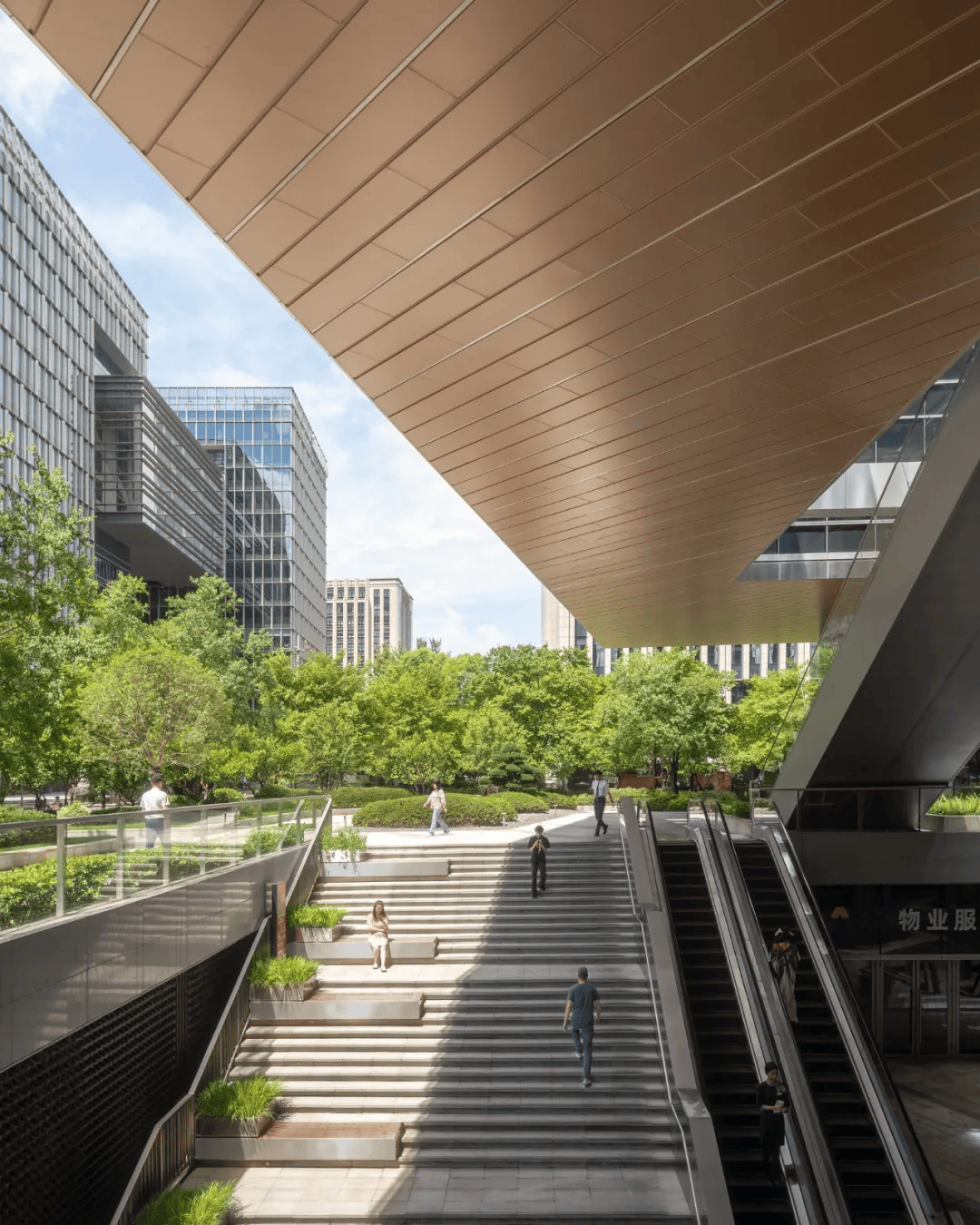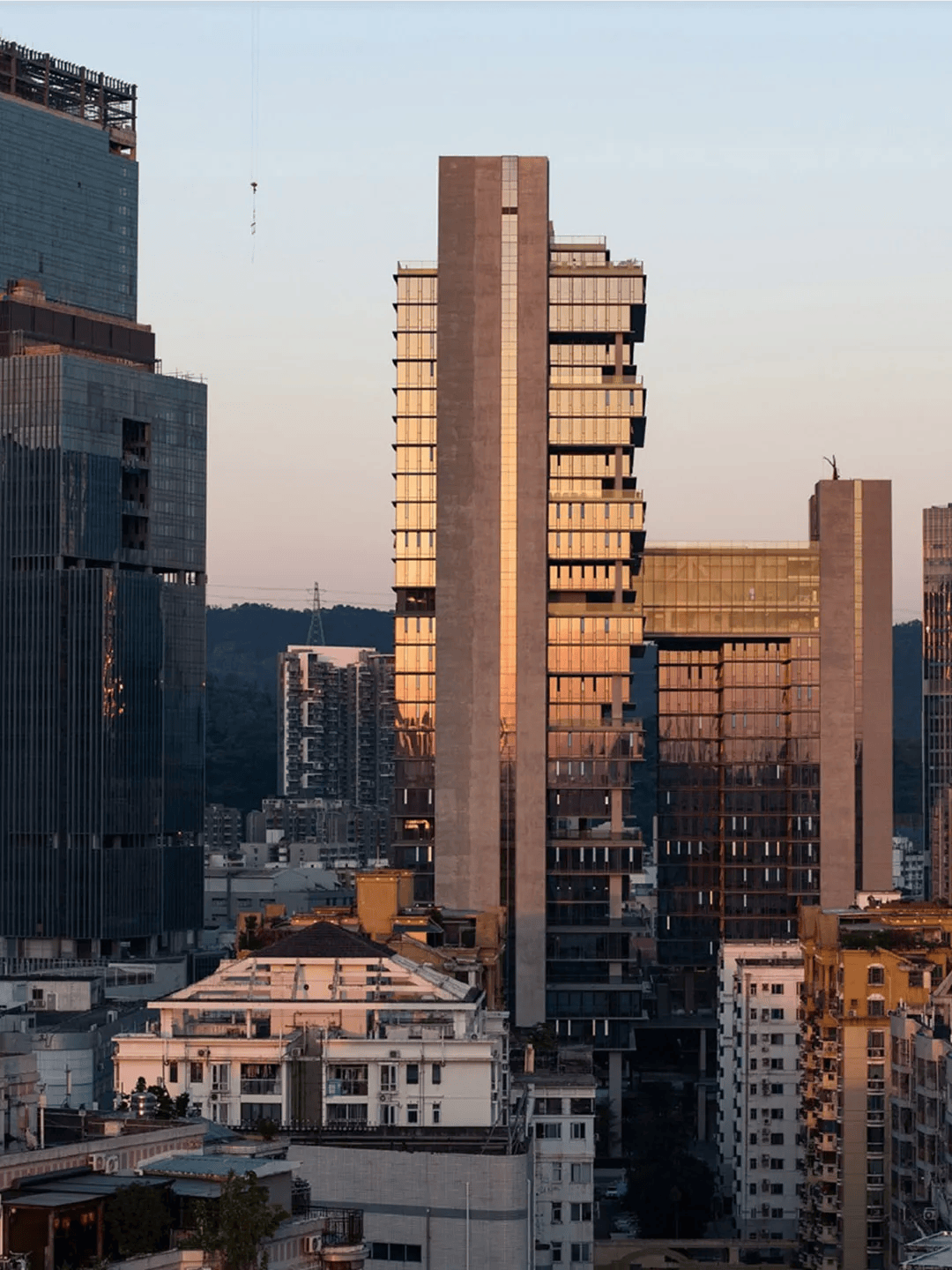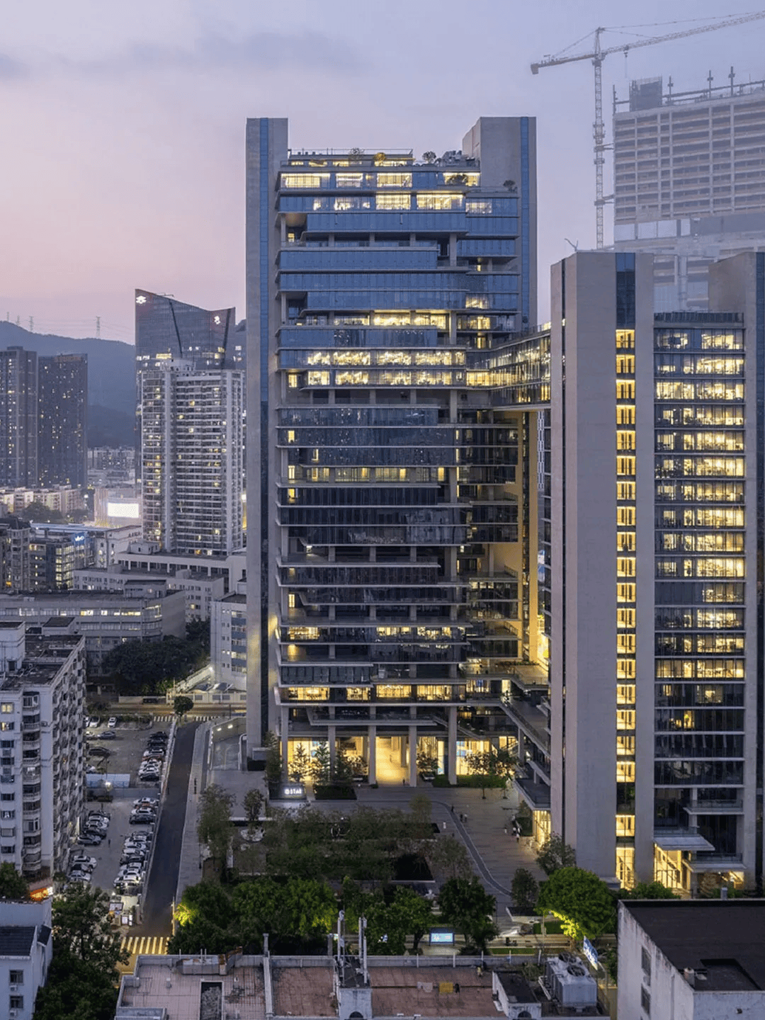 深圳梅林的这座智能创科大厦,探索了城市“新尺度”的可能性——既不割裂社区,也能承载未来。建筑根植于梅林的日常肌理,以深挑檐、社区阳台与多层公共空间,回应南方高密度城市中对开放、轻盈、绿色环境的渴望。设计以“中性框架”为生成逻辑,融合办公、交流与休憩功能,在垂直维度上打造一个“城市阳伞”式的共享结构,连接老社区的人情尺度与新城市的未来愿景,呈现一种属于深圳的独特进化形态。