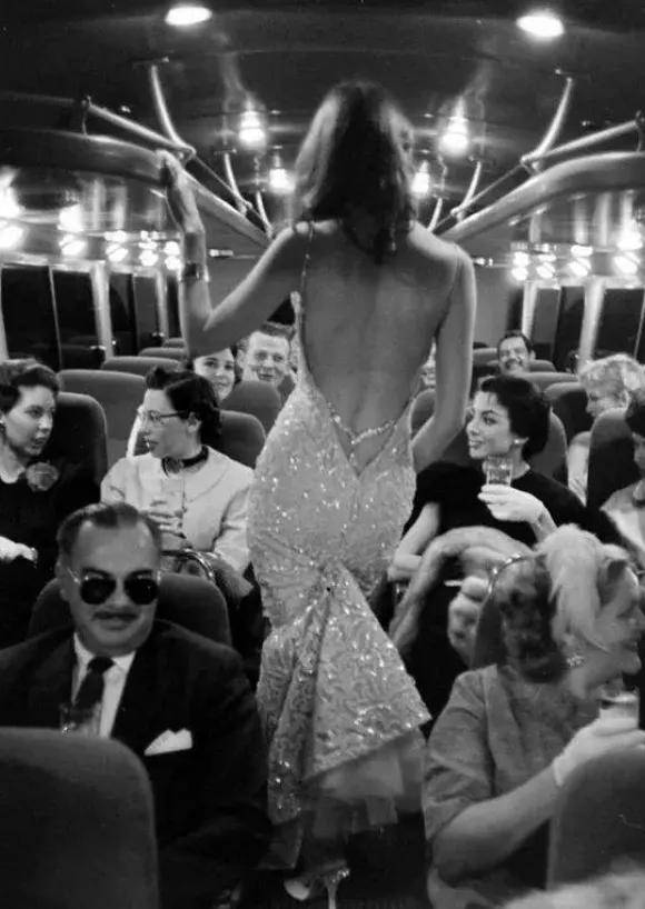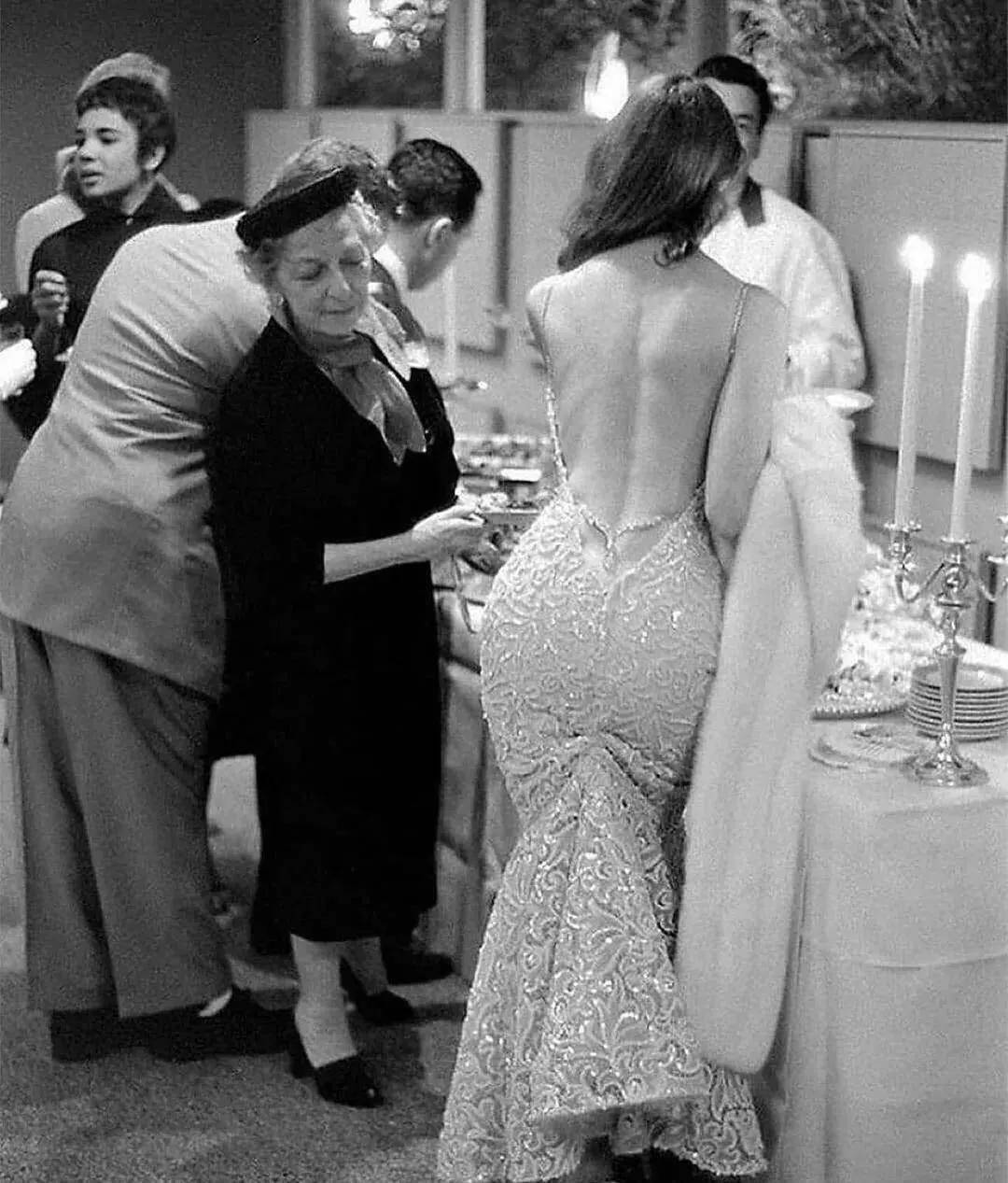 1957年,背影女神Vikki Dougan参加时尚晚会。