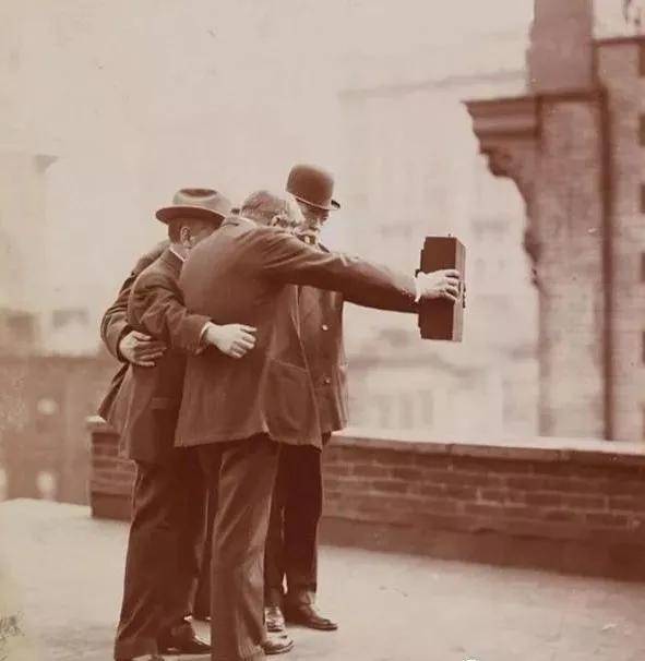 1947年,一群大老爷们抱在一起,正在研究如何自拍。从古到今,男性对自拍这件事都不是很得心应手。