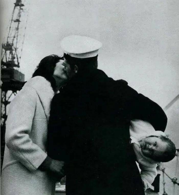 战争阴影下的温情:海军归来的拥吻与思念的全家福