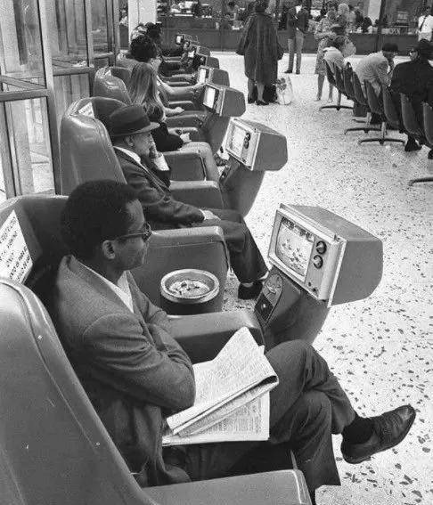 1969年,洛杉矶Greyhound公交站推出了投币式的座椅电视机,在等待公交车的间隙里,可以投币观看电视,这算是车站按摩椅的1.0版本。