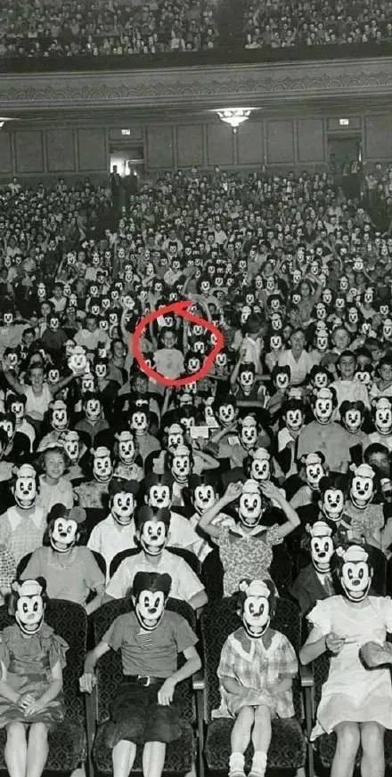 1930年米老鼠诞生两周年之际,一场米老鼠俱乐部见面会要求参与者佩戴面具,几乎所有到场者都遵守了规定,唯独几位“漏网之鱼”未戴面具,形成有趣的对比。这一事件反映了当时流行文化对大众生活的渗透。