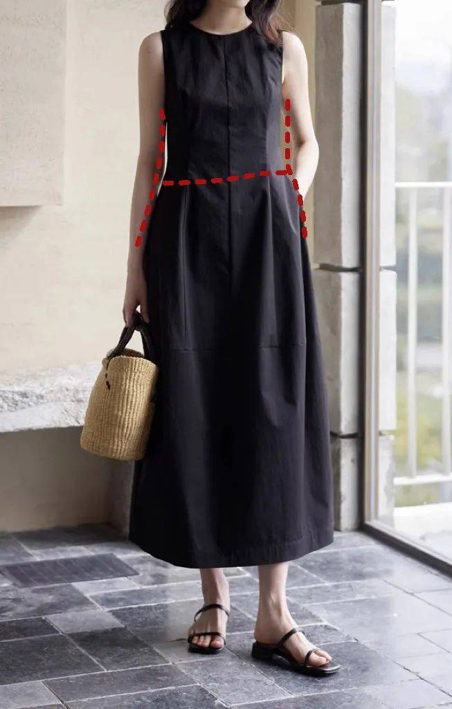 一袭黑色的长裙,收腰的设计,将她的腰线突出得很完美,裙摆也做了收窄设计。