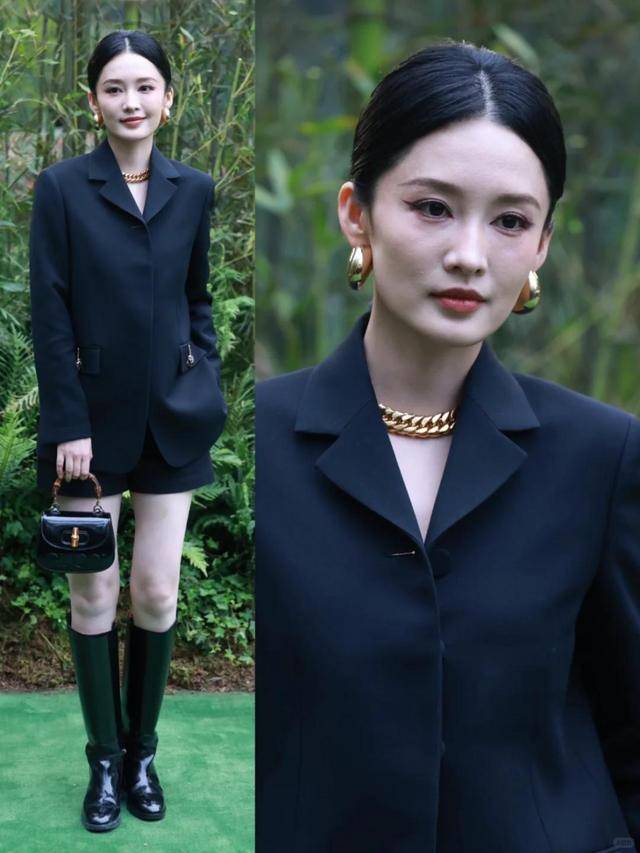 张小斐以黑色西装套装+黑色高跟鞋的极简造型登场,被网友形容为“刚下班路过红毯”。这种随意感在高级品牌活动中显得有些格格不入: