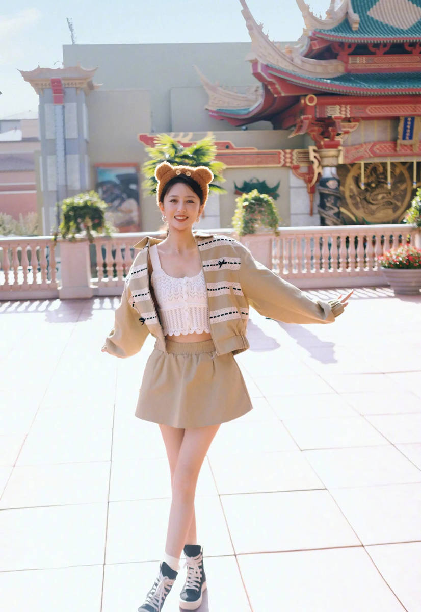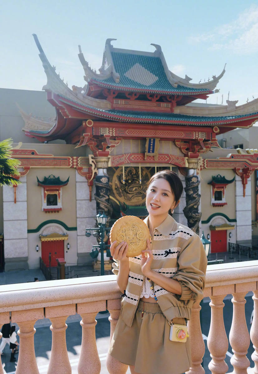 董璇与好姐妹佟丽娅一起在环球影城里拍美照,状态超好。