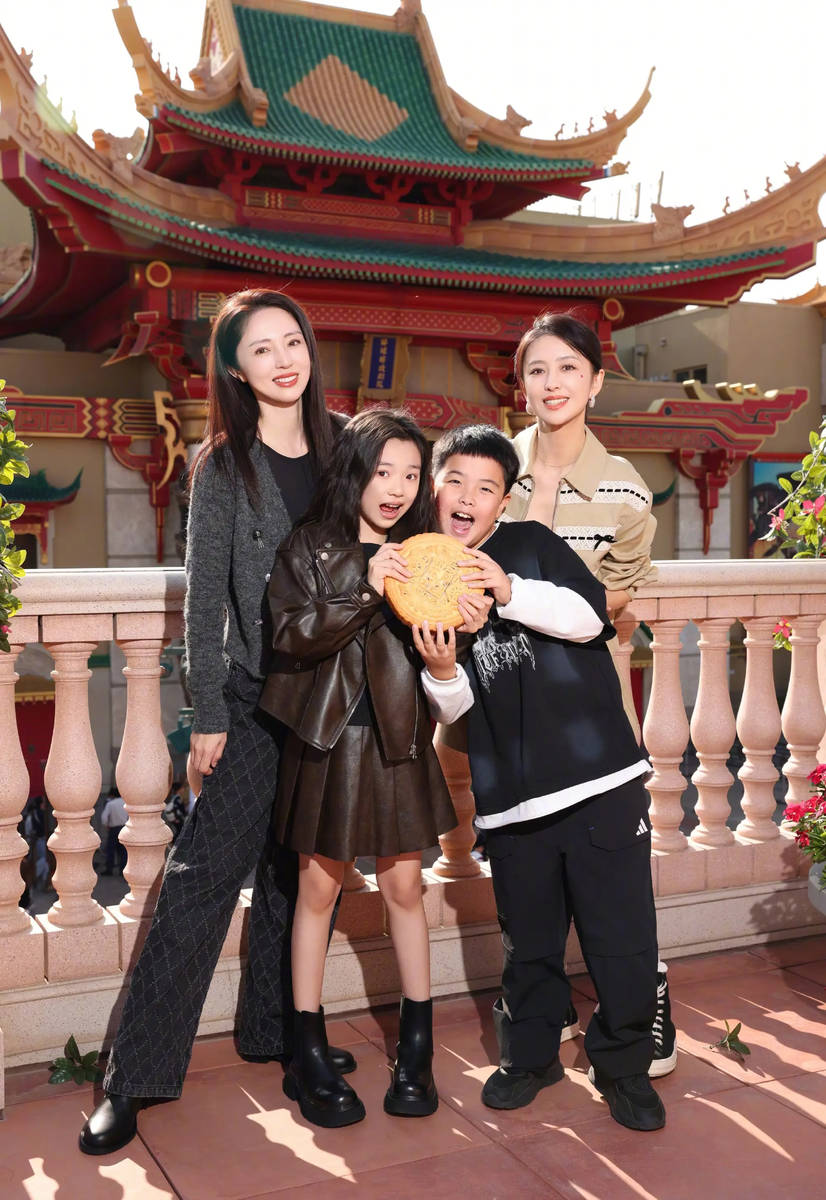 近日,佟丽娅与董璇带着孩子朵朵、小酒窝一同游玩北京环球影城,两个小朋友拿着一个大月饼与两个美妈一起拍大合照,氛围超欢乐!