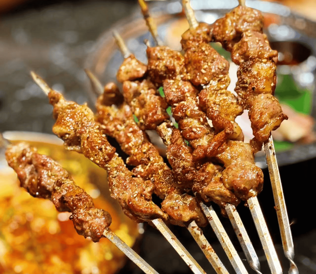 新疆羊肉串不是 “小打小闹”,是街头的 “香味担当”。师傅会把羊腿肉切成大块,穿在红柳木签上(红柳的香能渗进肉里),架在炭火上烤,油珠滴在火上冒白烟,烤到肉边焦黑,撒两把孜然、一把辣椒面,香味能飘半条街。