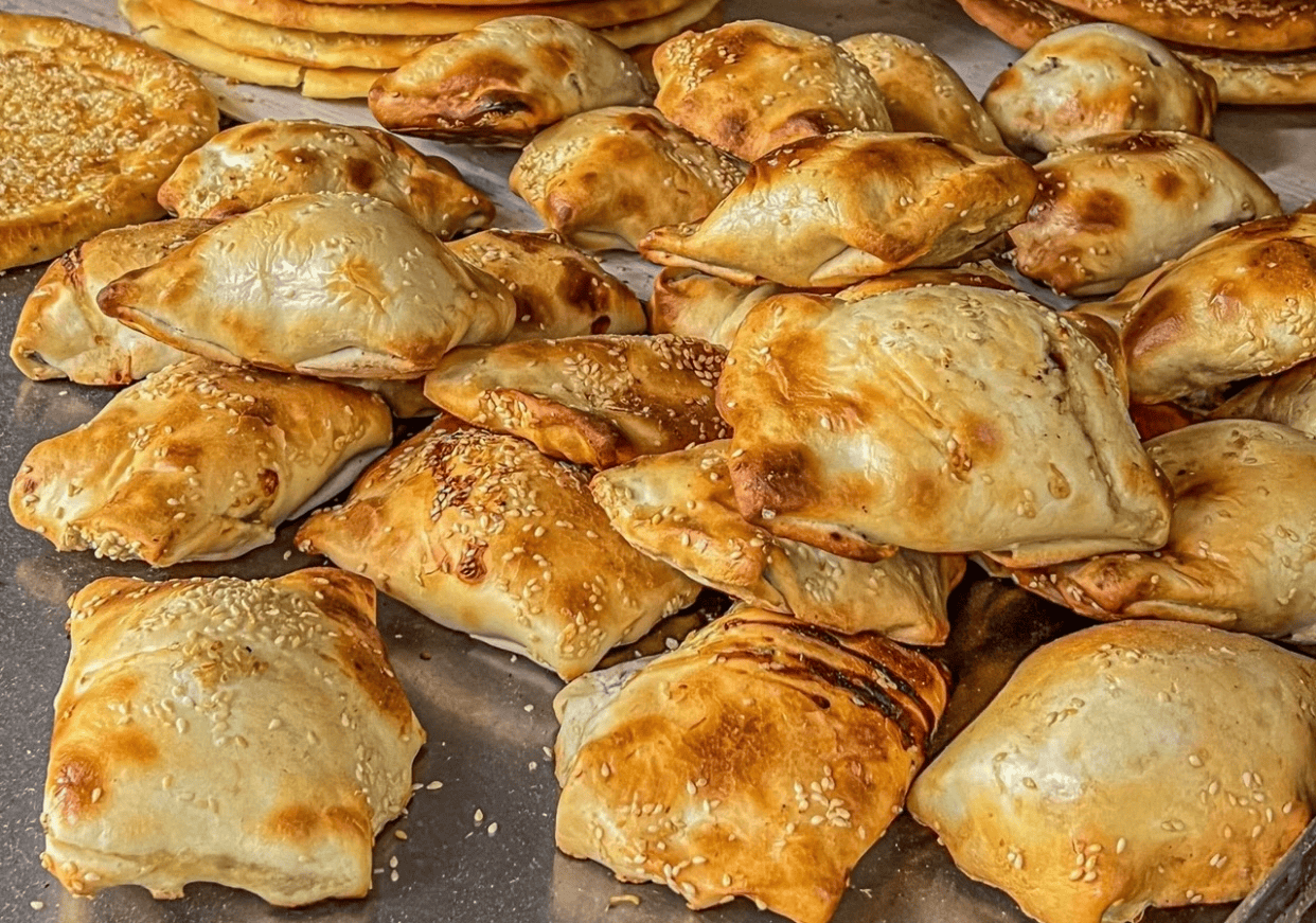 烤包子是新疆早市的 “灵魂”,刚出炉的烤包子烫得没法直接拿,得用报纸裹着,咬一口先冒热气,再爆肉汁。做包子的馅很实在:羊肉剁成末,加洋葱丁、盐、孜然拌匀,包进死面皮里,捏出花褶,放进馕坑边烤 10 分钟,烤到外皮金黄带焦斑就行。