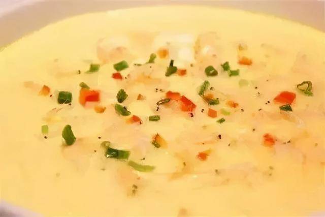 虾米炖蛋是一道简单又美味的家常炖品。鸡蛋充分搅散后,加入适量的水和盐搅匀,再撒上火腿肠碎粒和虾皮,增添了丰富的口感和鲜美的味道。用保鲜膜盖住碗口,隔水蒸制,大火煮开后改中火,直到鸡蛋凝固。出锅后撒上葱花,细腻嫩滑的炖蛋散发着诱人的香气,每一口都让人陶醉其中。