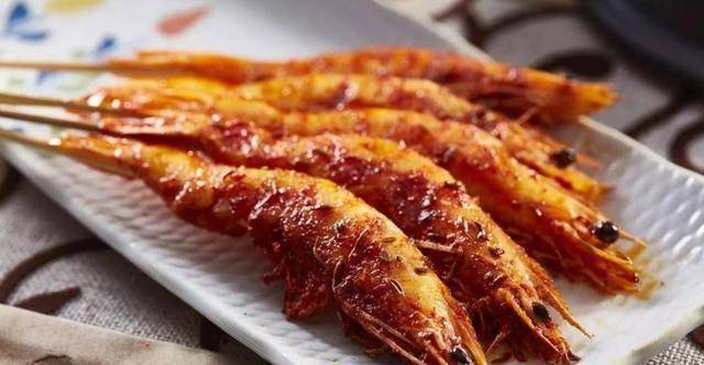 食材:虾9个、 茶匙 、盐、 蒜子两瓣 、生姜一片 、米酒几滴、 孜然粉、 竹签5根