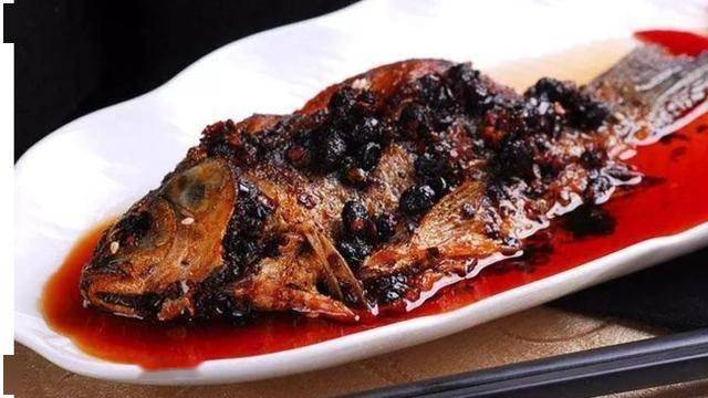 食材:鲫鱼750克,猪肉50克,豆豉70克,料酒25克,酱油10克,精盐5克,鲜汤250克,白糖7克