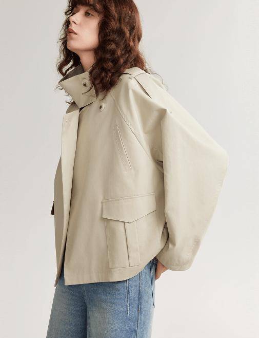 ▌漏斗领短风衣:轻便利落,重心上移