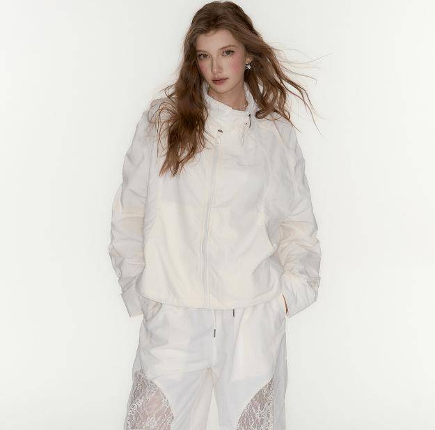 半高领或带抽绳的实穿设计,能在闭合时保持利落线条,敞开时则呈现自然外展的弧度。科技尼龙、厚针织等具有一定骨架的面料,是维持领型立体的关键。