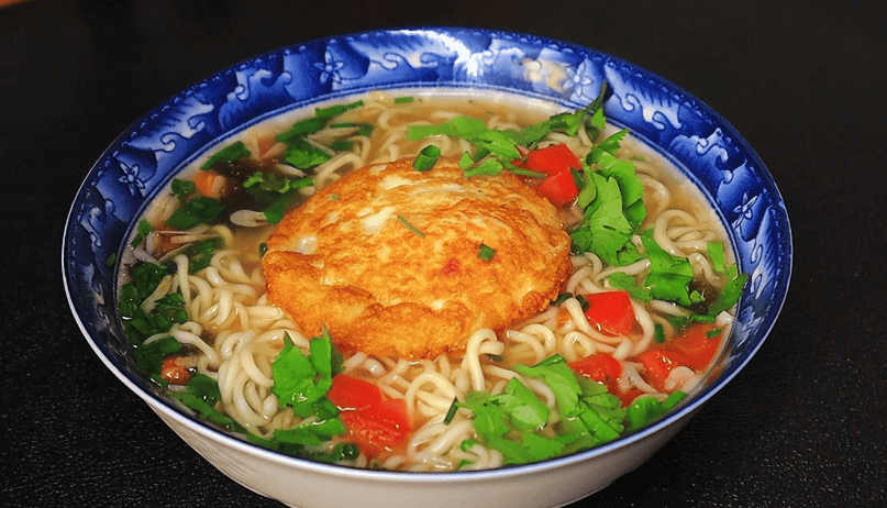 - 食材:鸡蛋面、小葱、香菜、西红柿、虾皮、紫菜。