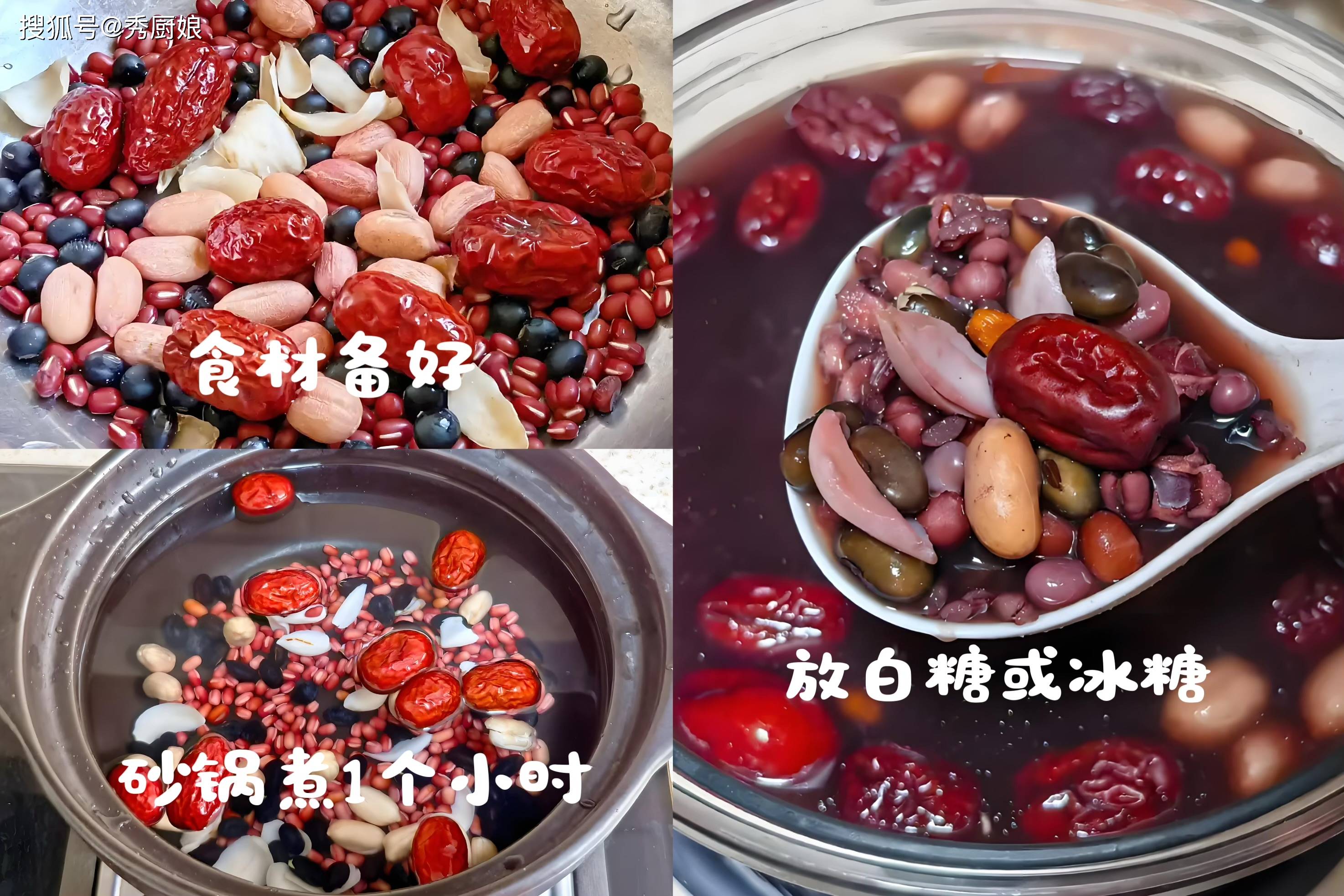 - 功效解析:黑豆补肾、红小豆祛湿、绿豆清热,三者构成基础平衡;花生补脾、百合润肺安神、红枣健脾养血,形成“润而不燥”的秋季滋补配方。