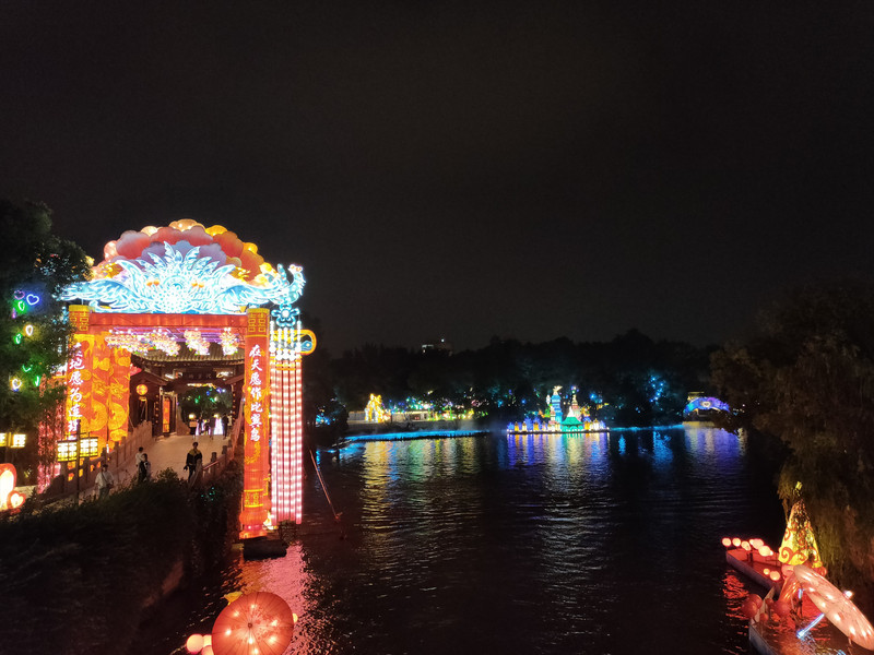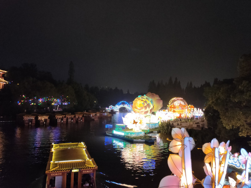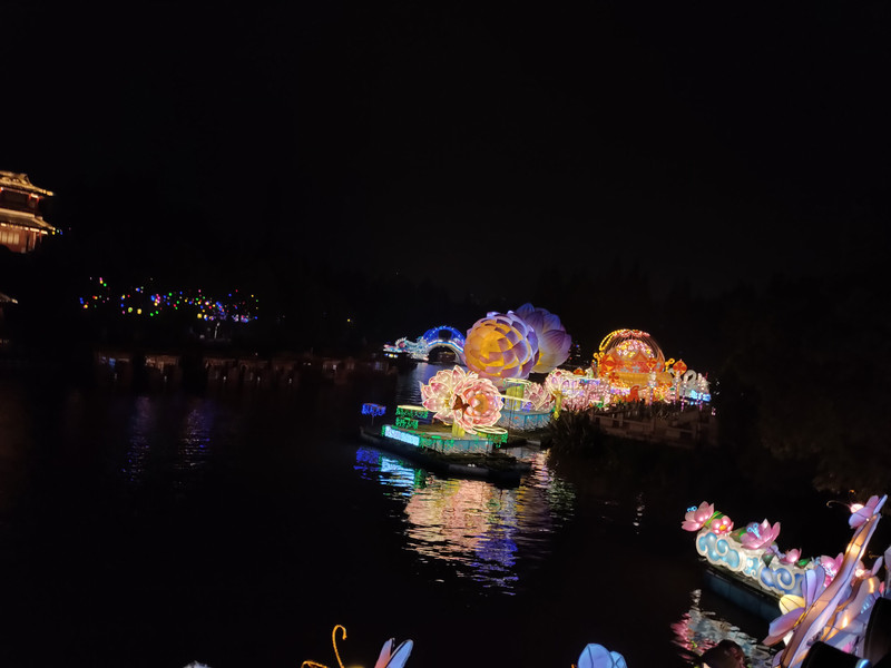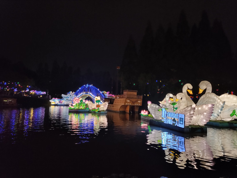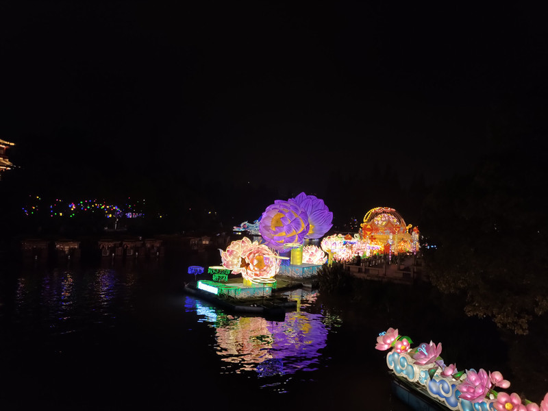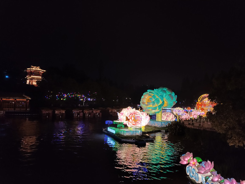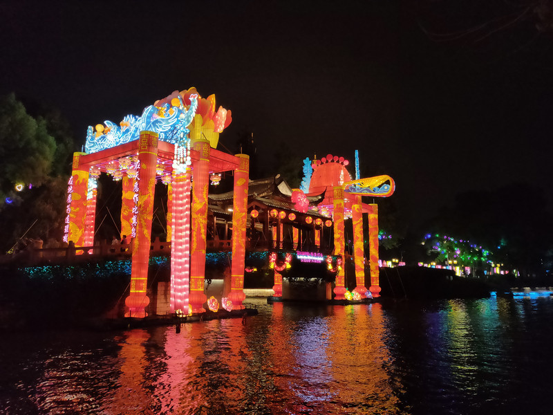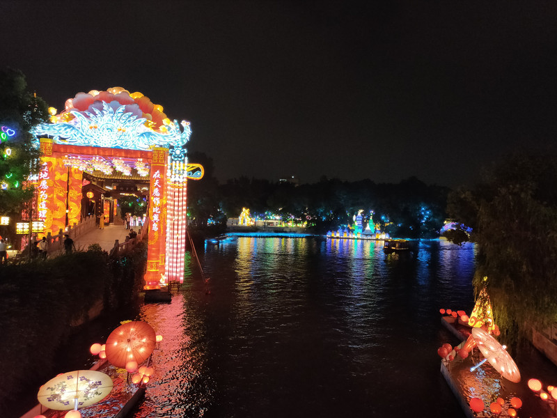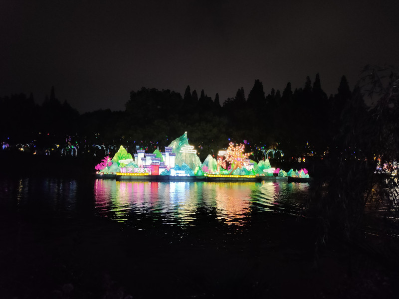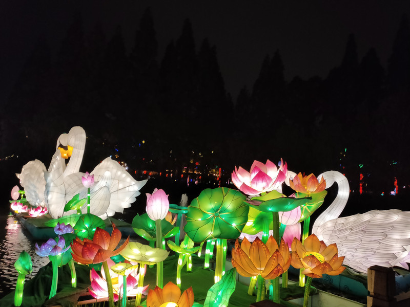 灯会夜游必体验画舫航线(码头位于公园西南)。