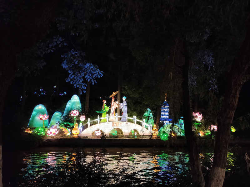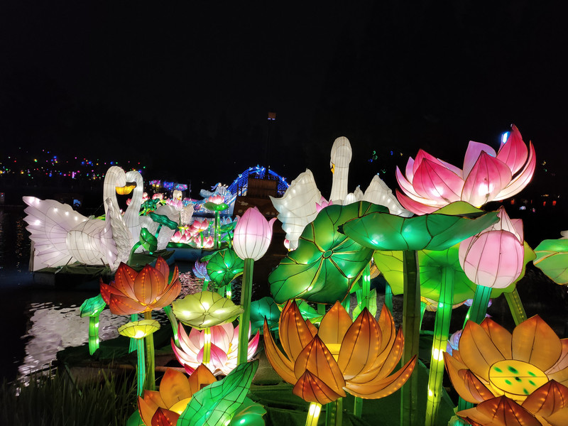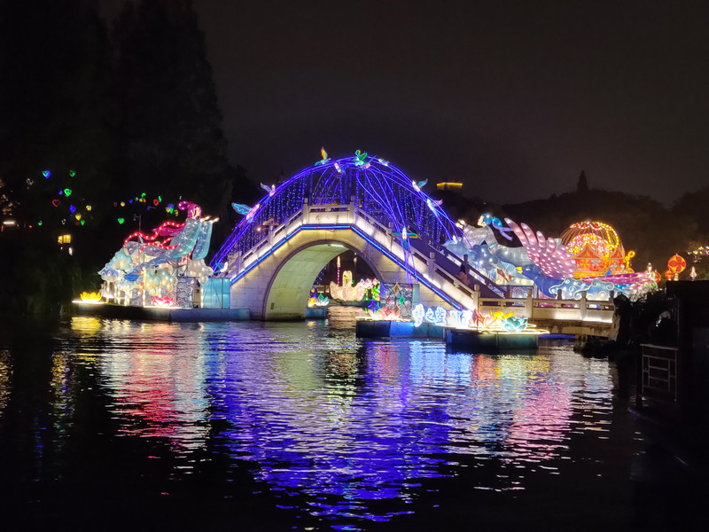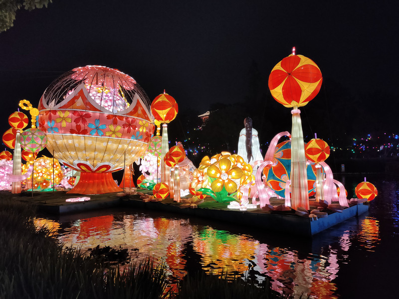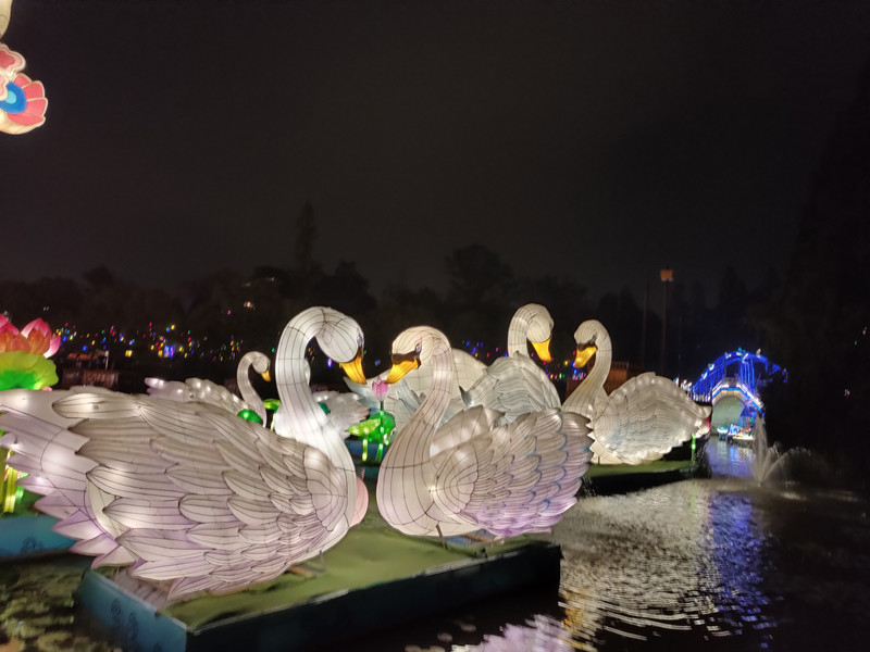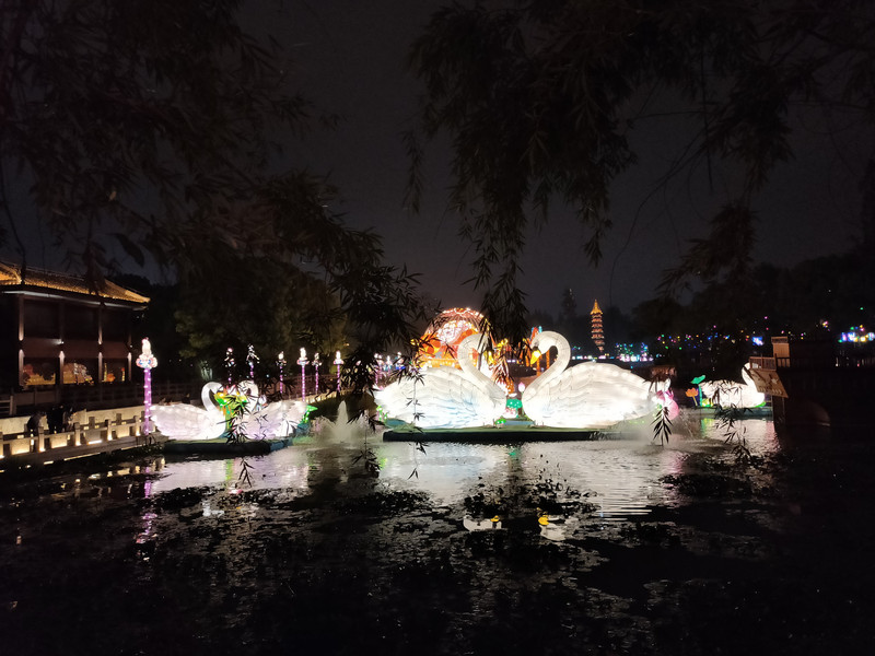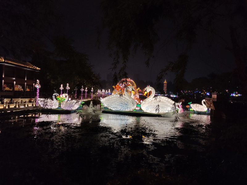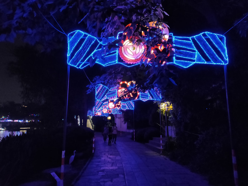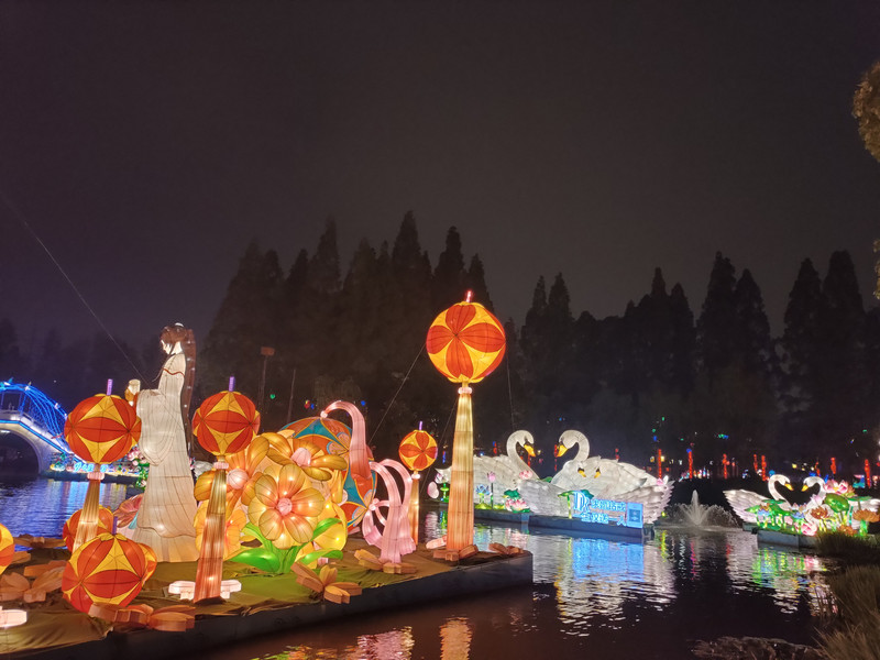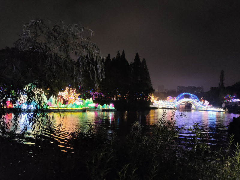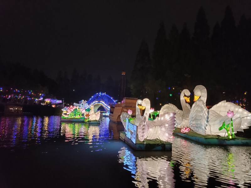 灯会夜游必体验画舫航线(码头位于公园西南)。