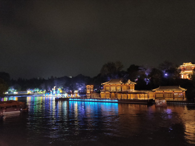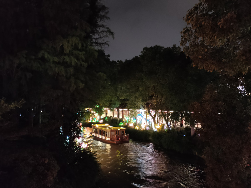 夜泊画舫,看两岸灯影揉碎星河,恰应“锦瑟微澜棹影开,花灯明灭夜徘徊”的意境。